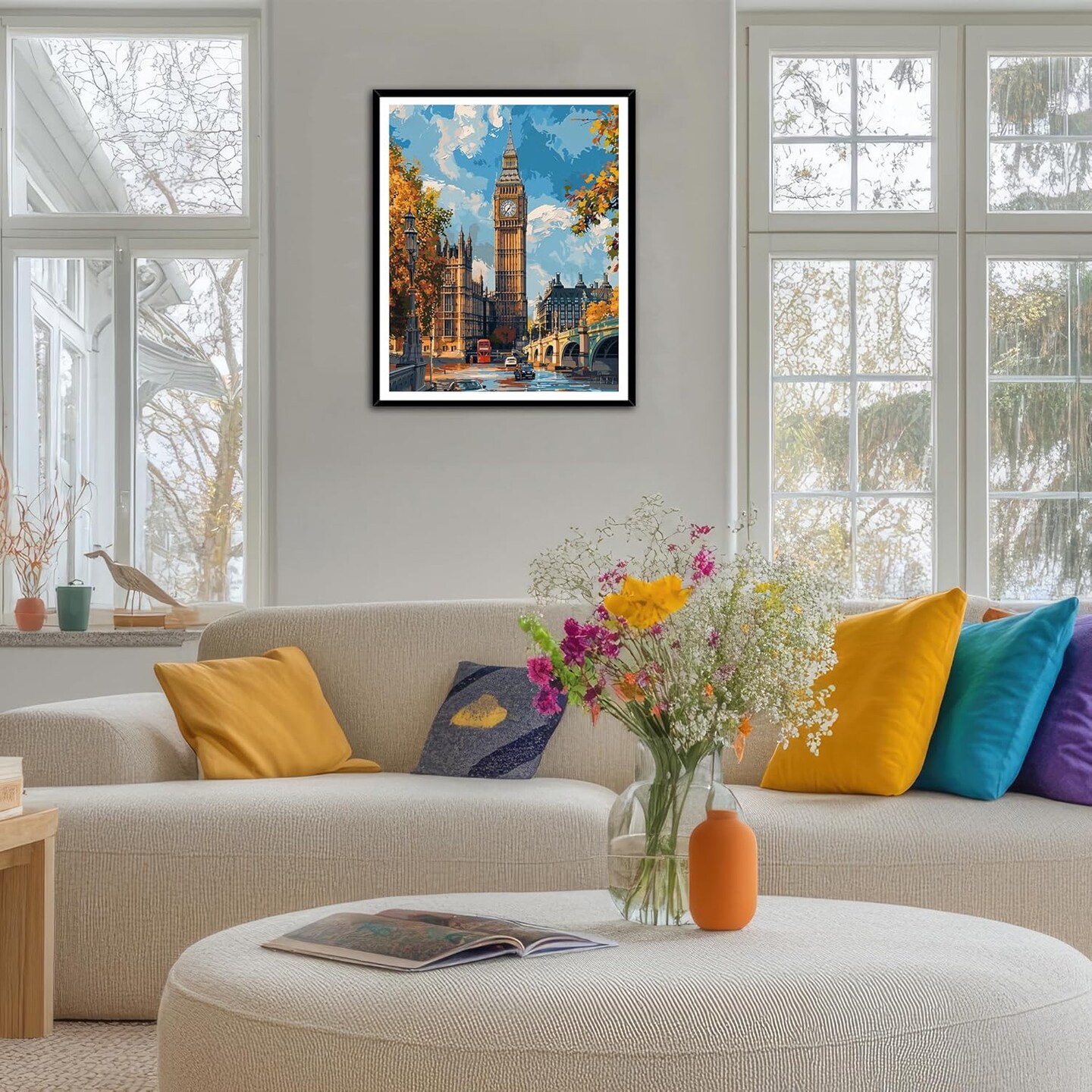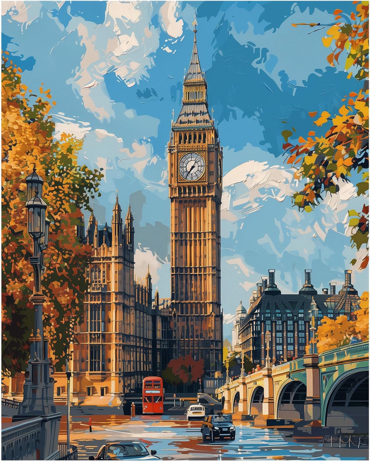Paint by Number Kits for Adults, Fall London Street Paint by Numbers, London Landmark Acrylic Painting for Home Wall Decor Gifts