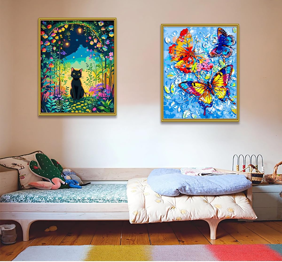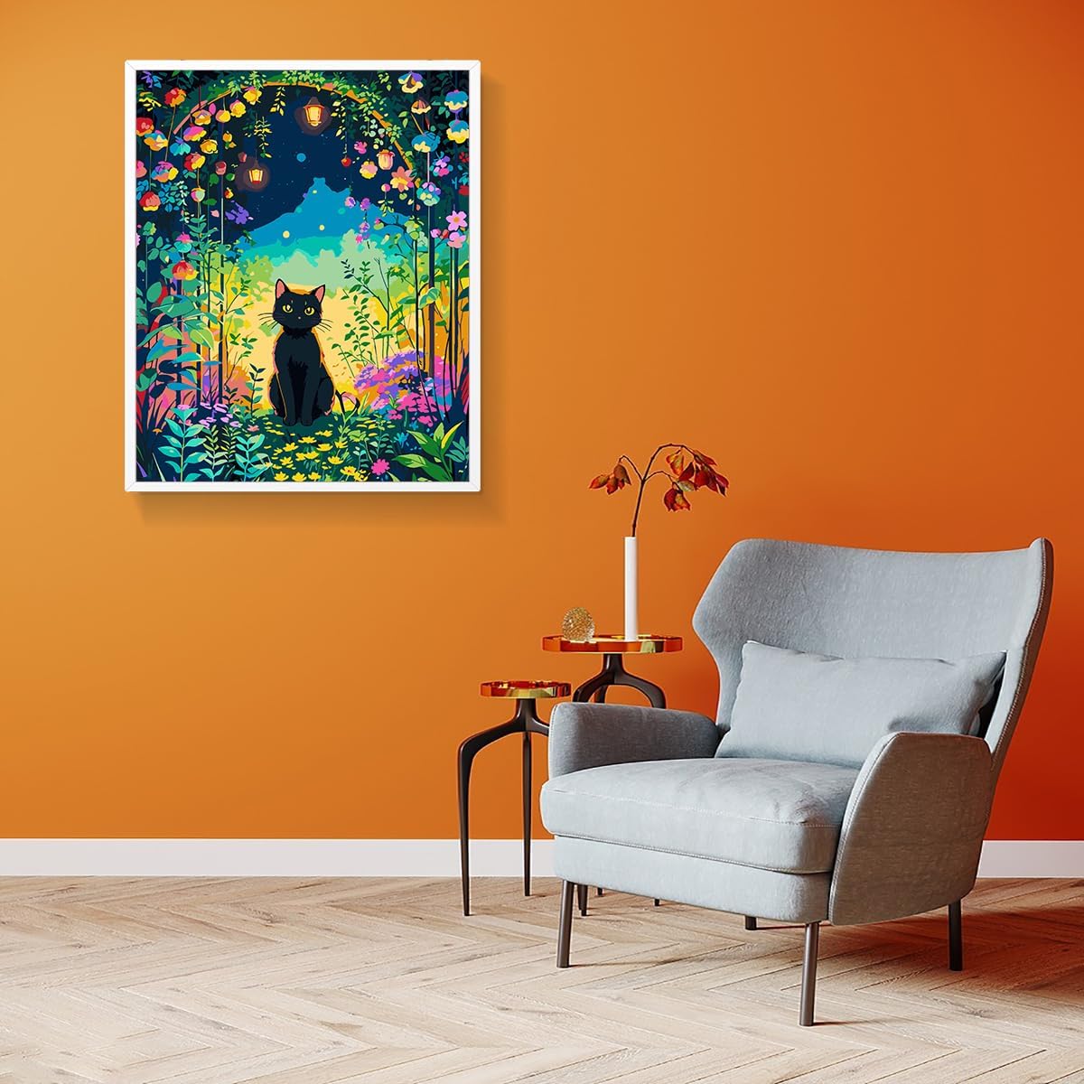 Paint by Numbers Black Cat, Paint by Number for Adults & Beginner Canvas, Animal Garden Landscape Oil Painting Kits, Perfect for Office Wall Decoration 16x20inch