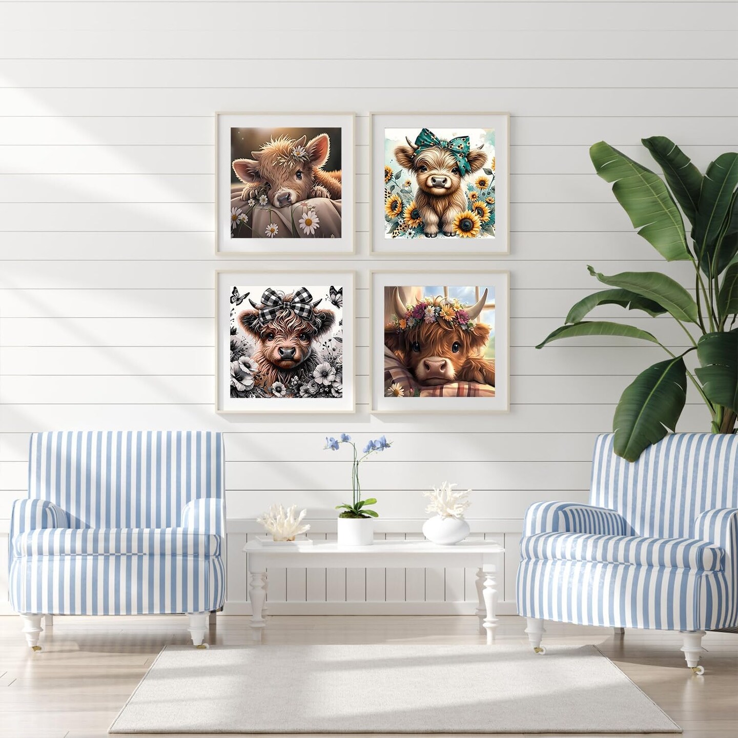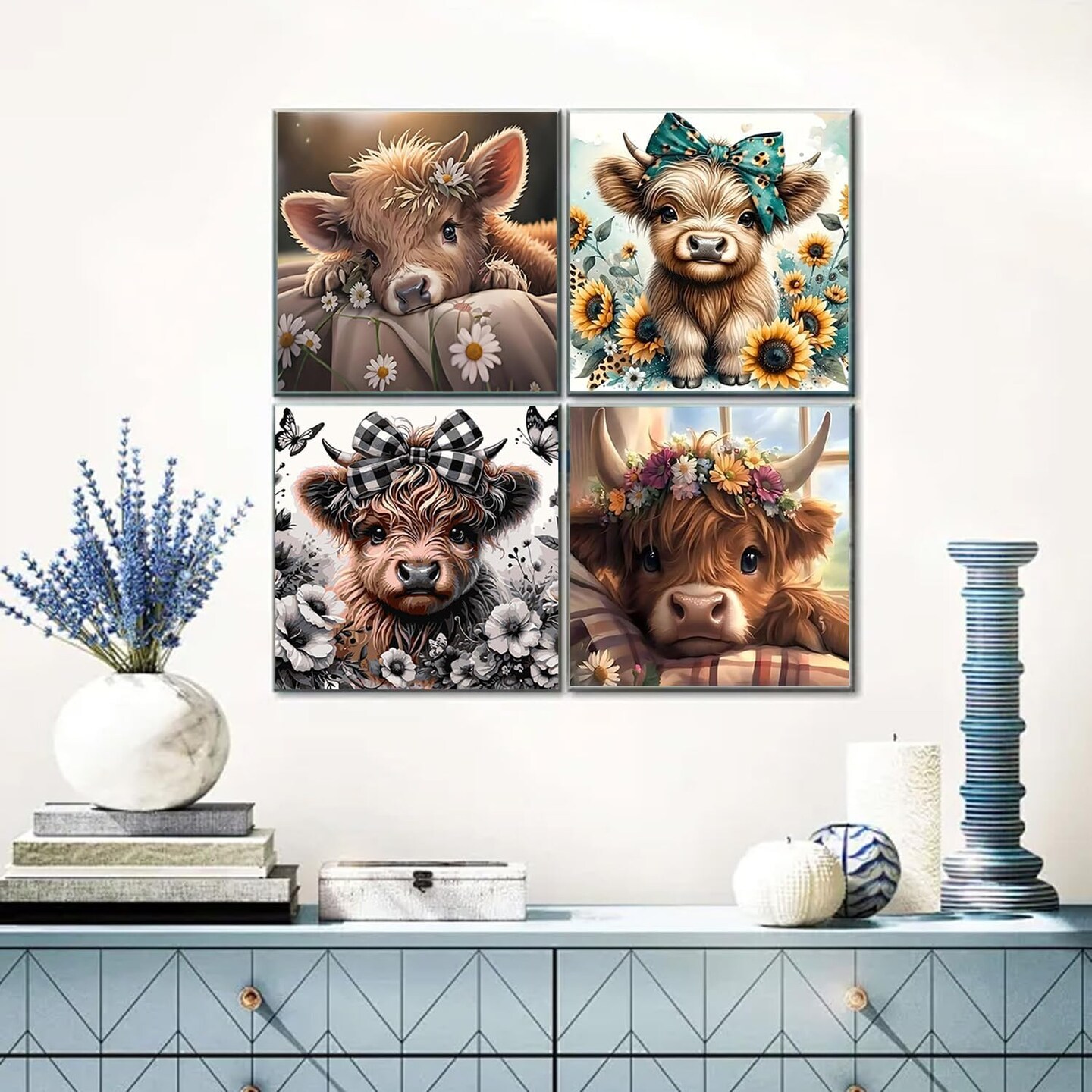 Paint By Numbers Cow Kit for Adults & Kids Beginners – 4 Pack 10x10 Inch DIY Acrylic Canvas Painting Set, Easy Animal Wall Art Kit for Home Decor & Gift