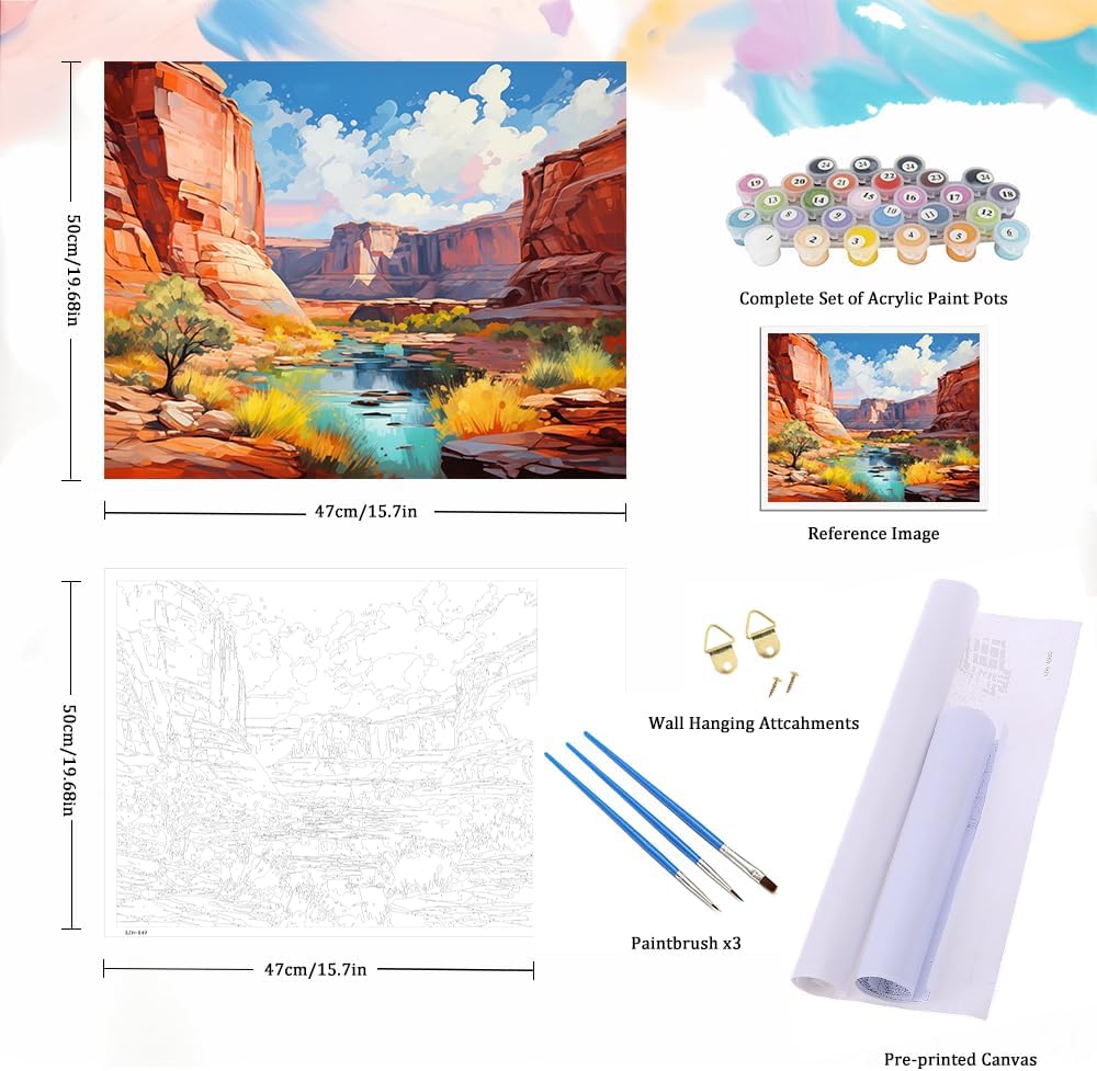 Paint by Numbers for Adults Beginner, Grand Canyon Acrylic Easy Suitable for Home Wall Decoration Flameless 16x20 Inch