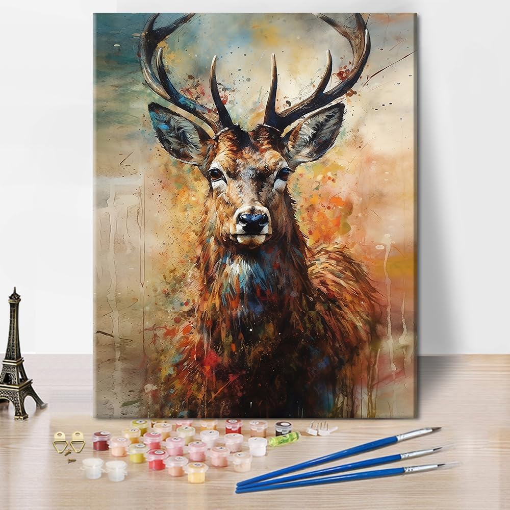 Paint by Numbers for Adults, Deer Adult Paint by Number Kits On Canvas Woodland Animals Paint-by-Number Kits Acrylic Oil Painting for Adults Kids Paint by Number Kit, 16 x20 Inch