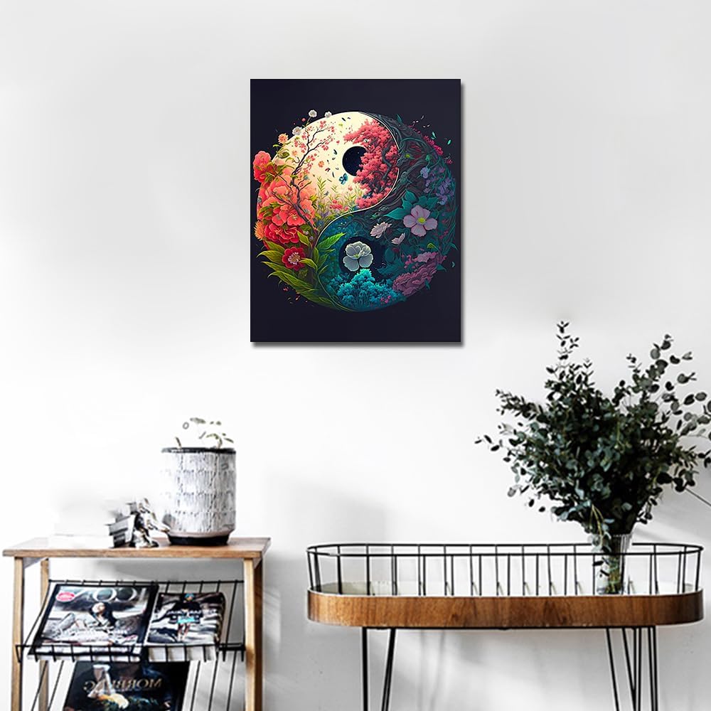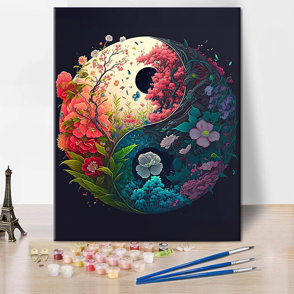 Paint by Numbers for Adults – Yin Yang Floral Canvas Kit, 16x20in