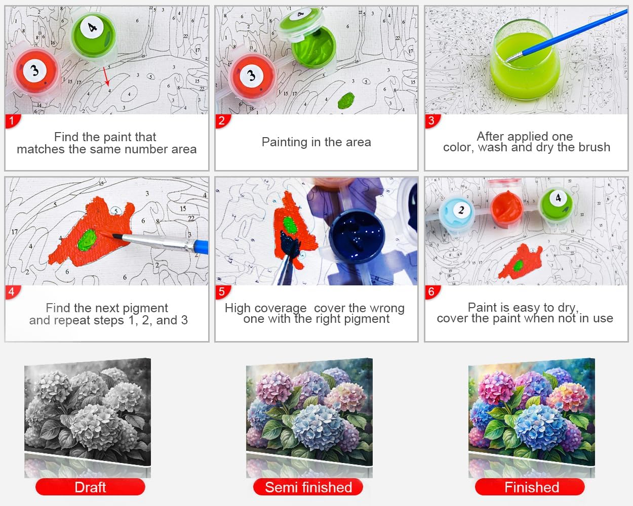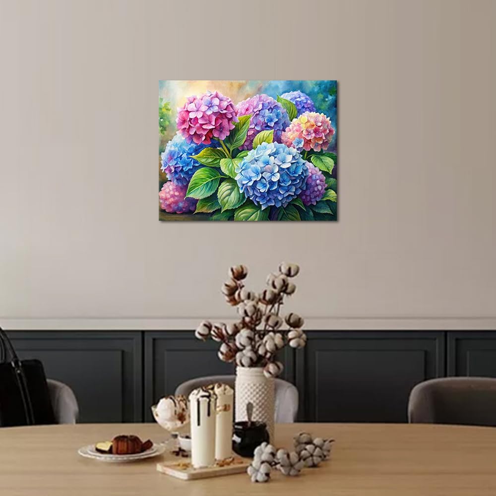 Paint by Numbers Kit for Adults Beginner, Flower Adult Paint by Number Kits on Canvas Watercolor Hydrangeas in Soothing Pastel Tones Paint by Number for Adults for Floral Arrangements Decor 16x20 Inch