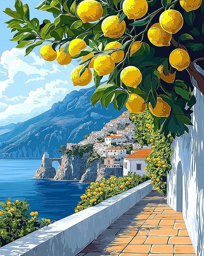 Paint by Numbers Kit for Adults Beginner-Amalfi Coast Adult Paint by Number Kits on Canvas, Easy Adults' Paint-by-Number Kits Oil Painting for Gift Home Wall Decor 16x20in
