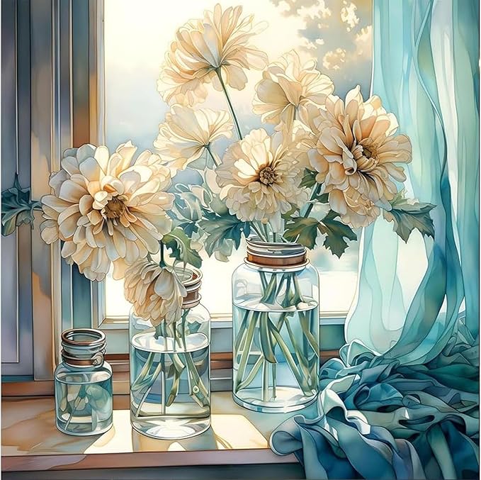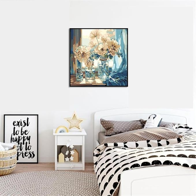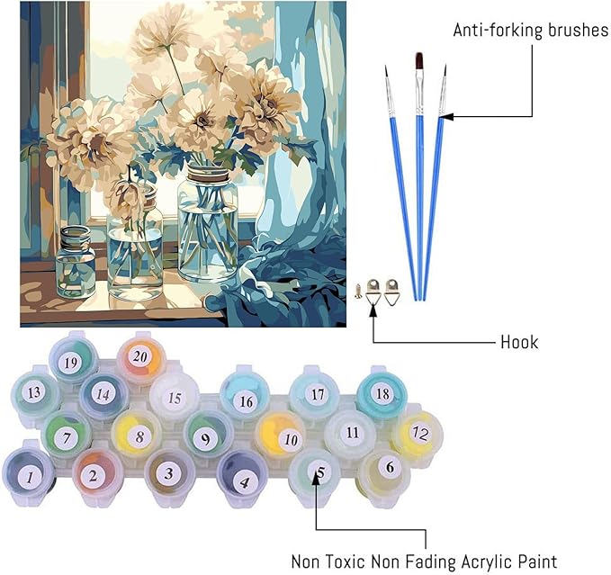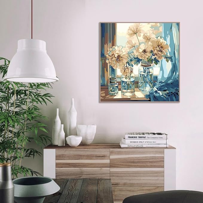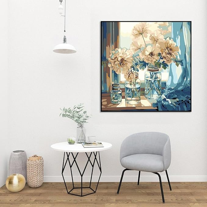 Paint by Numbers Kit for Adults, Flowers Paint by Numbers on Canvas for Beginners, Acrylic Easy Painting Number Kits for Gift Decor - 16x16 Inch
