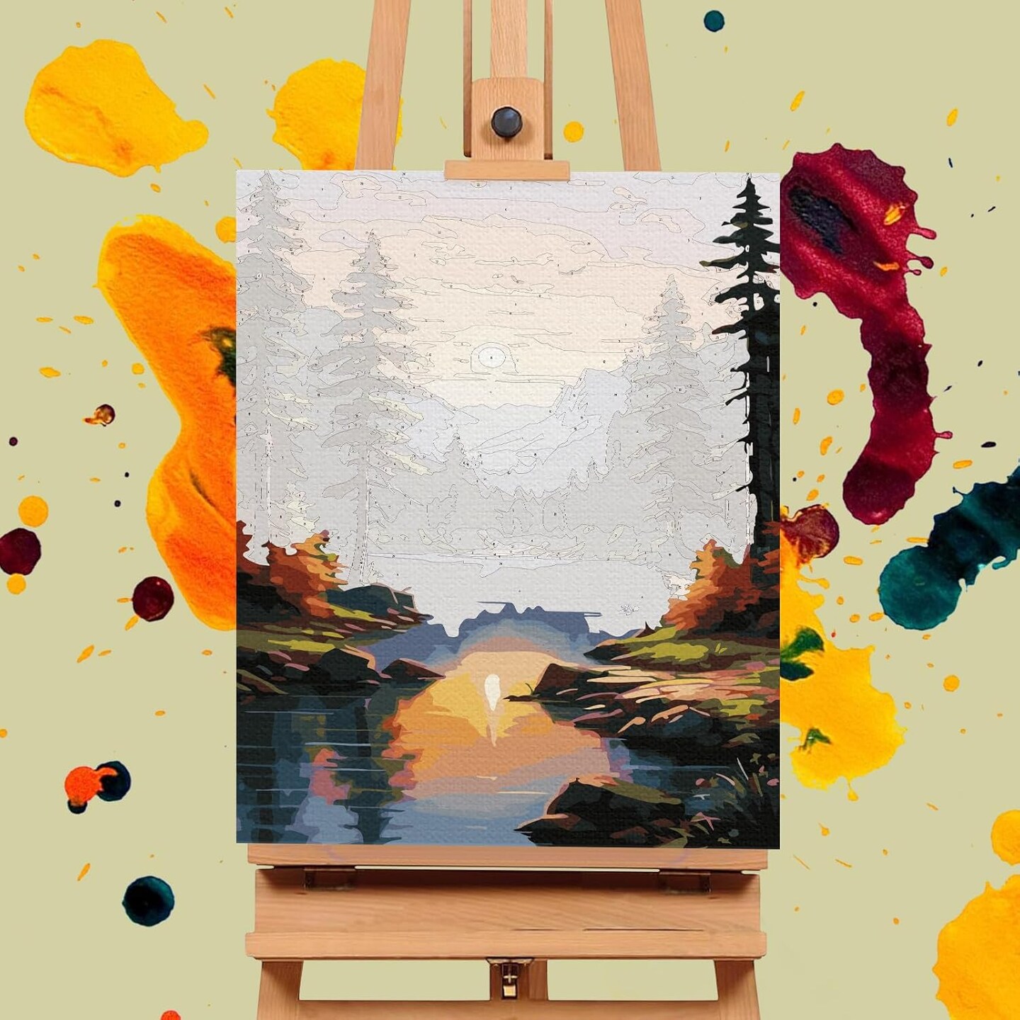 Paint by Numbers Kit for Adults Framed Canvas - 16x20 Inch Lake Landscape Adult Paint by Number Kits with Frame, Sunset DIY Acrylic Framed Canvas for Painting Kits for Adults with Gift Box