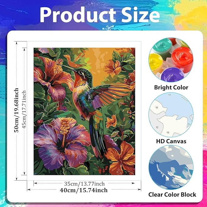 Paint by Numbers Kit for Adults, Hummingbird Paint by Numbers for Adults, Paint by Numbers Kit for Beginner for Gift and Home Wall Decor 16x20 Inch
