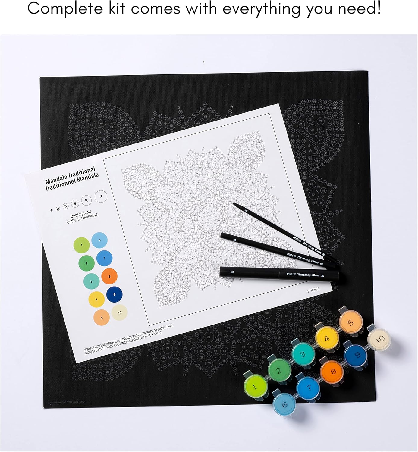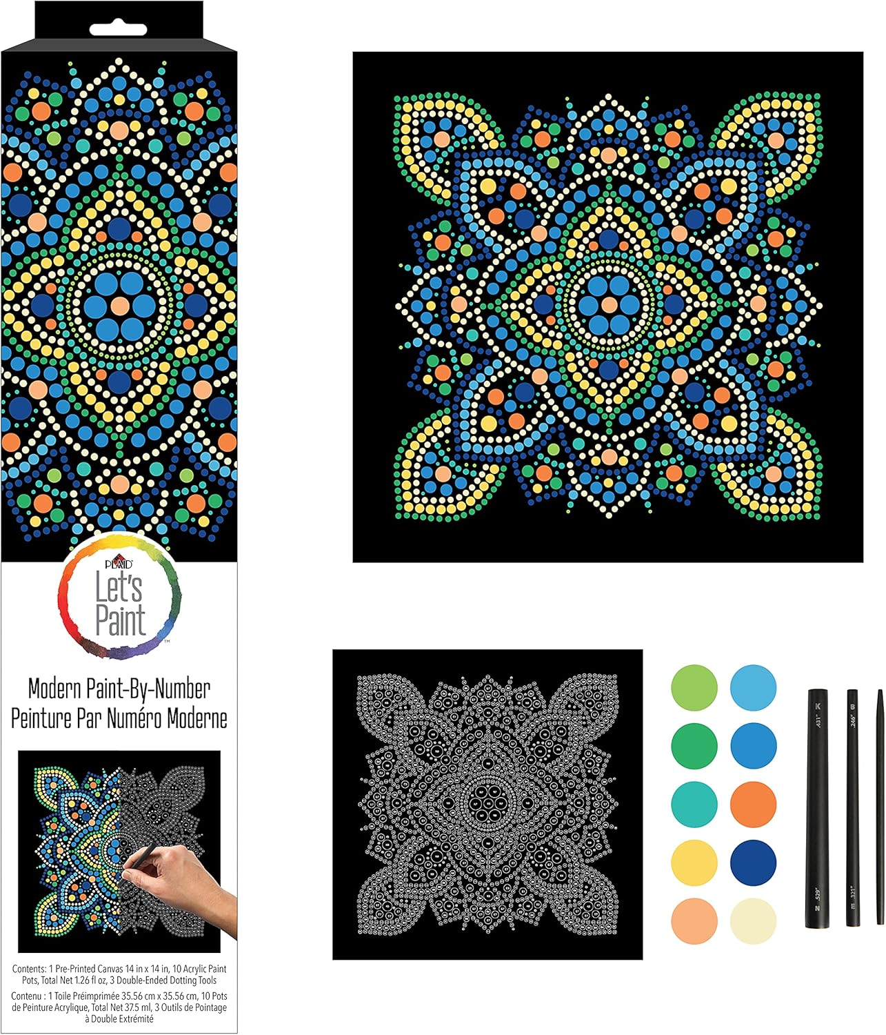 Paint by Numbers Kits – Modern Mandala Dot by Numbers Painting Kit for Adults & Kids, 14x14 Inch DIY Acrylic Art Craft with Textured Finish and Dotting Tools