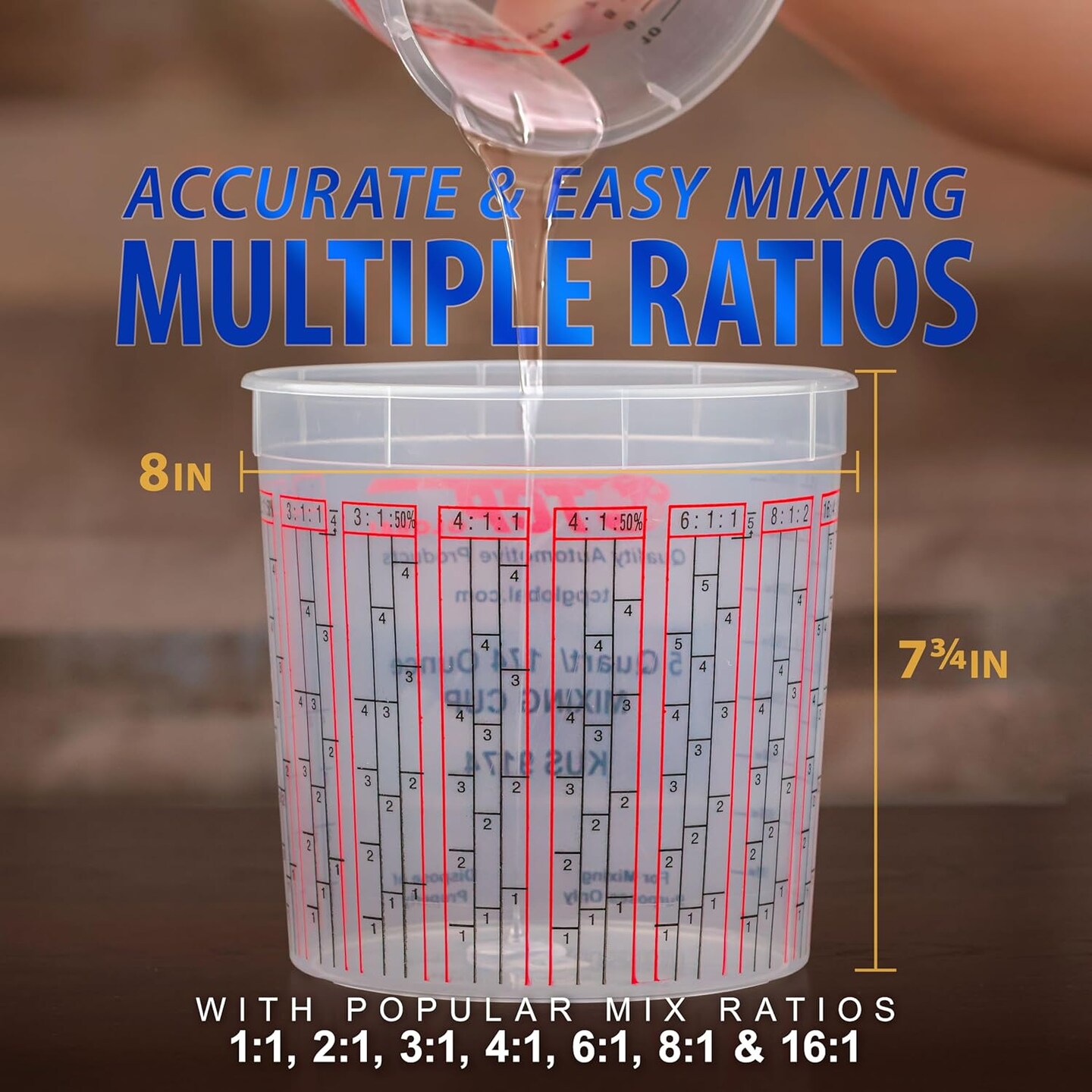 Paint Mixing Cups Plastic Measuring Cup Buckets Epoxy Resin, Disposable or Reusable, 174-Ounce (5-Quart) - Pack of 48 - Graduated, Mixing Ratios, Automotive Painting Art Crafts Kitchen