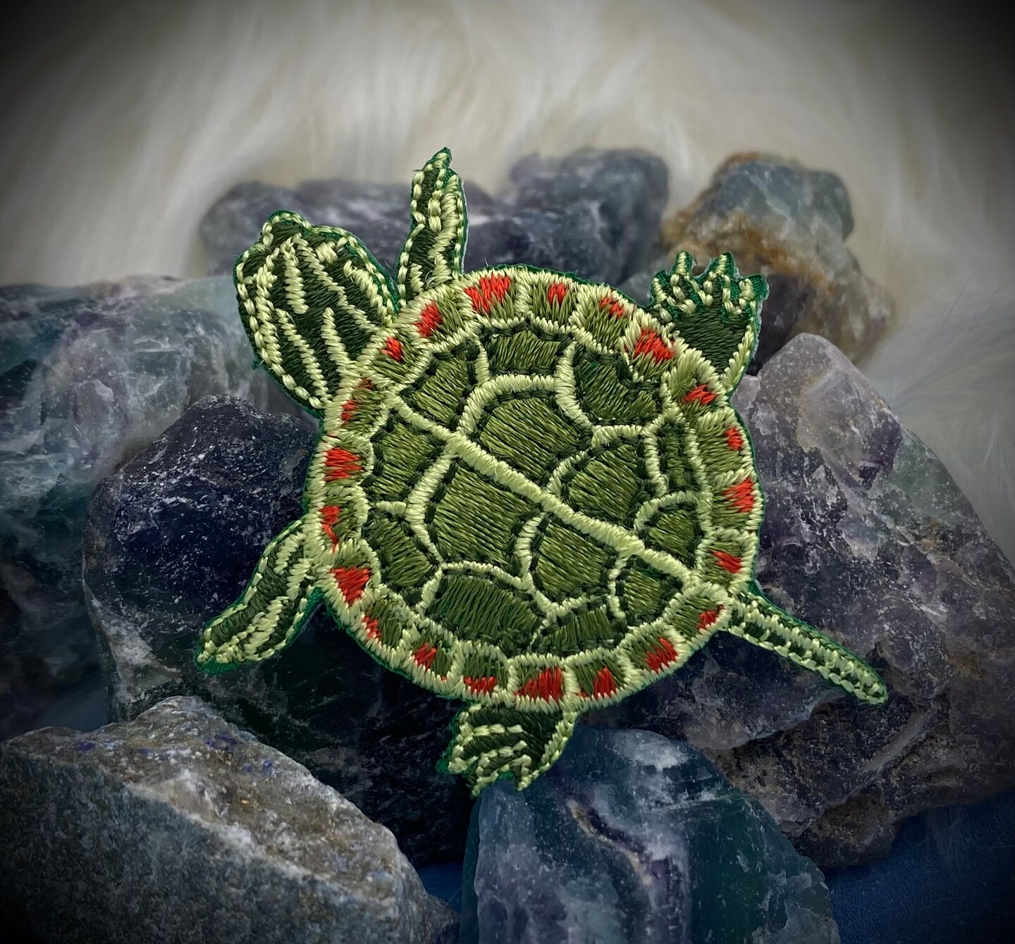 Painted Turtle, Terapin, Embroidered, Iron on Patch