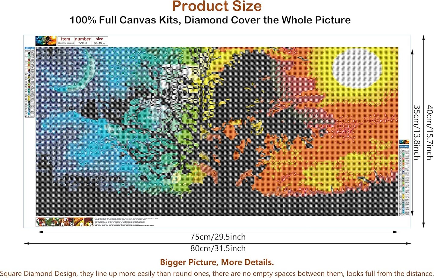 Painting by Number Kits for Adults, Diamond Painting Kits Square Full Drill Diamond Art Kit Picture Craft for Home Wall Art Decor, 15.8"x31.5" (Day & Night Tree)
