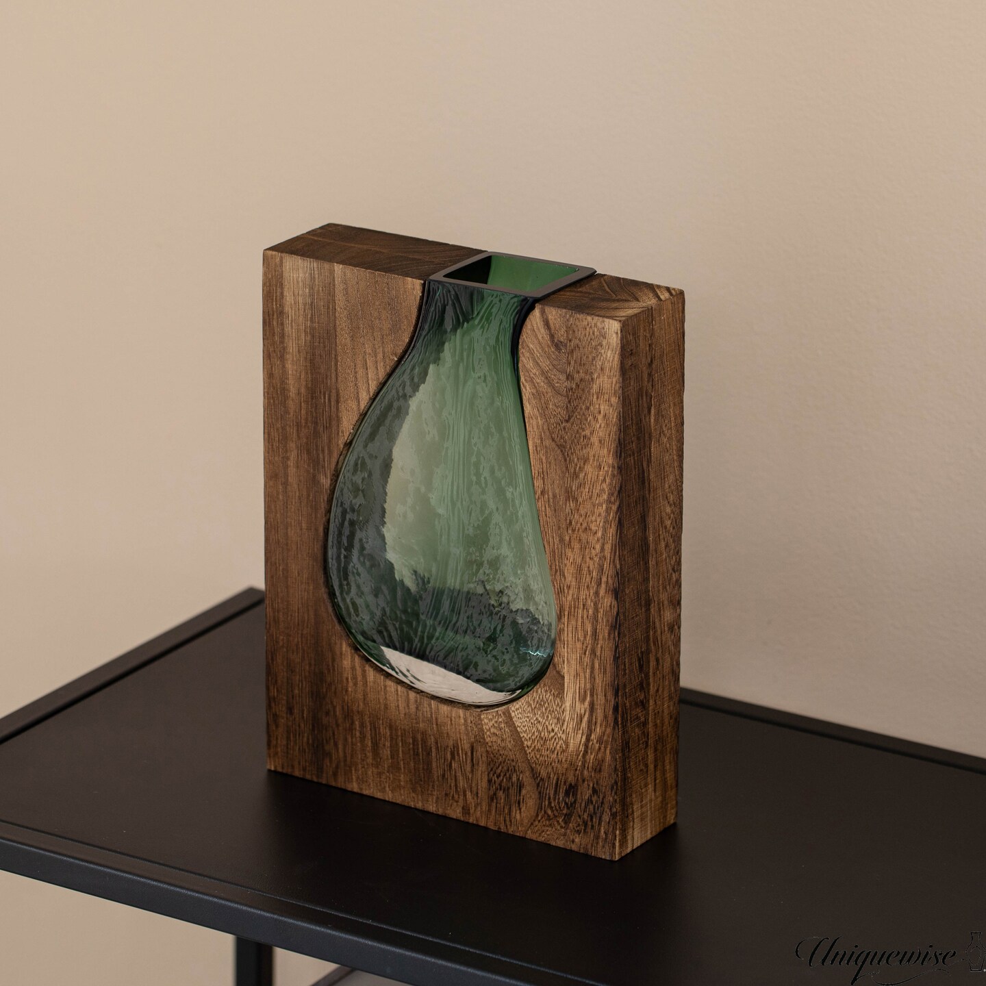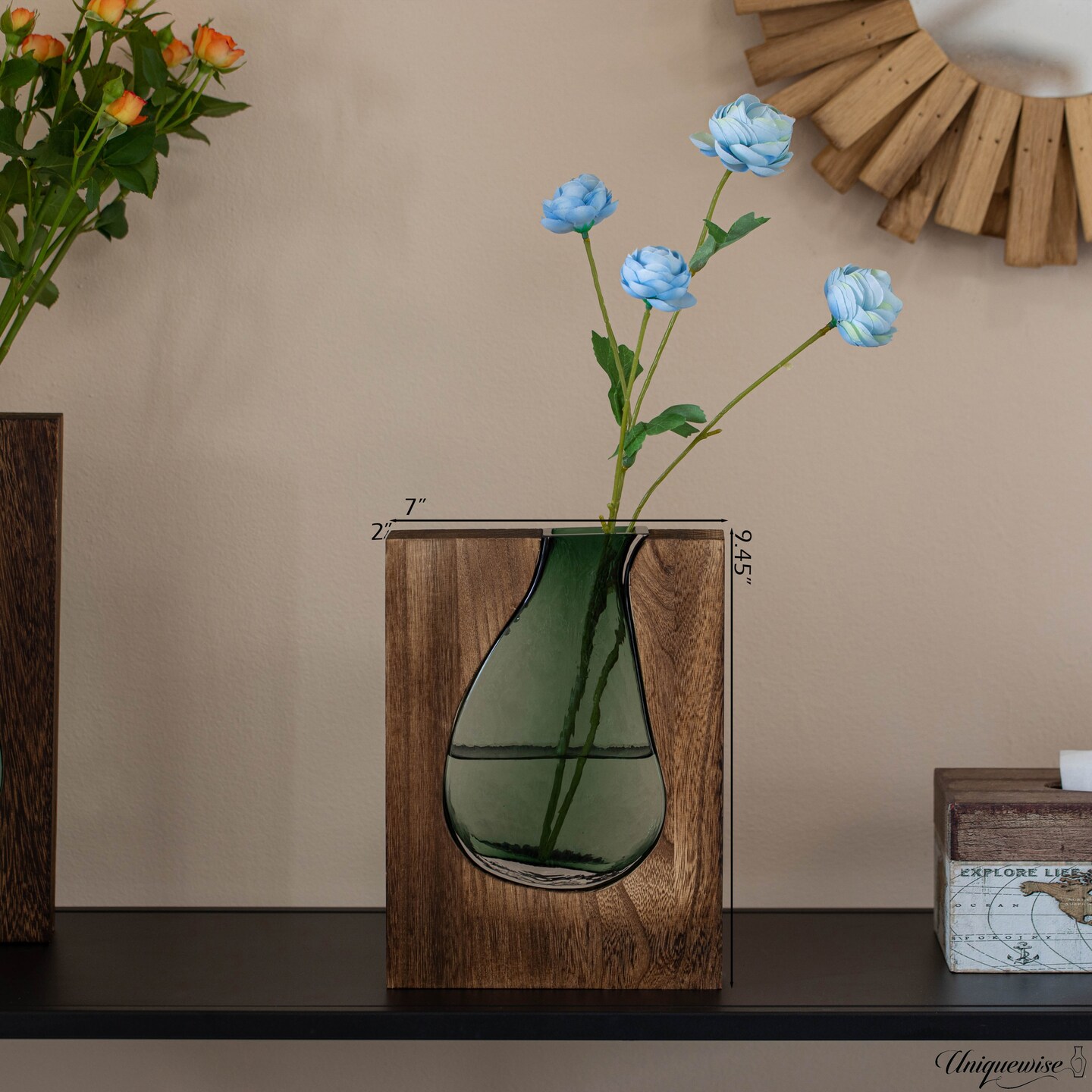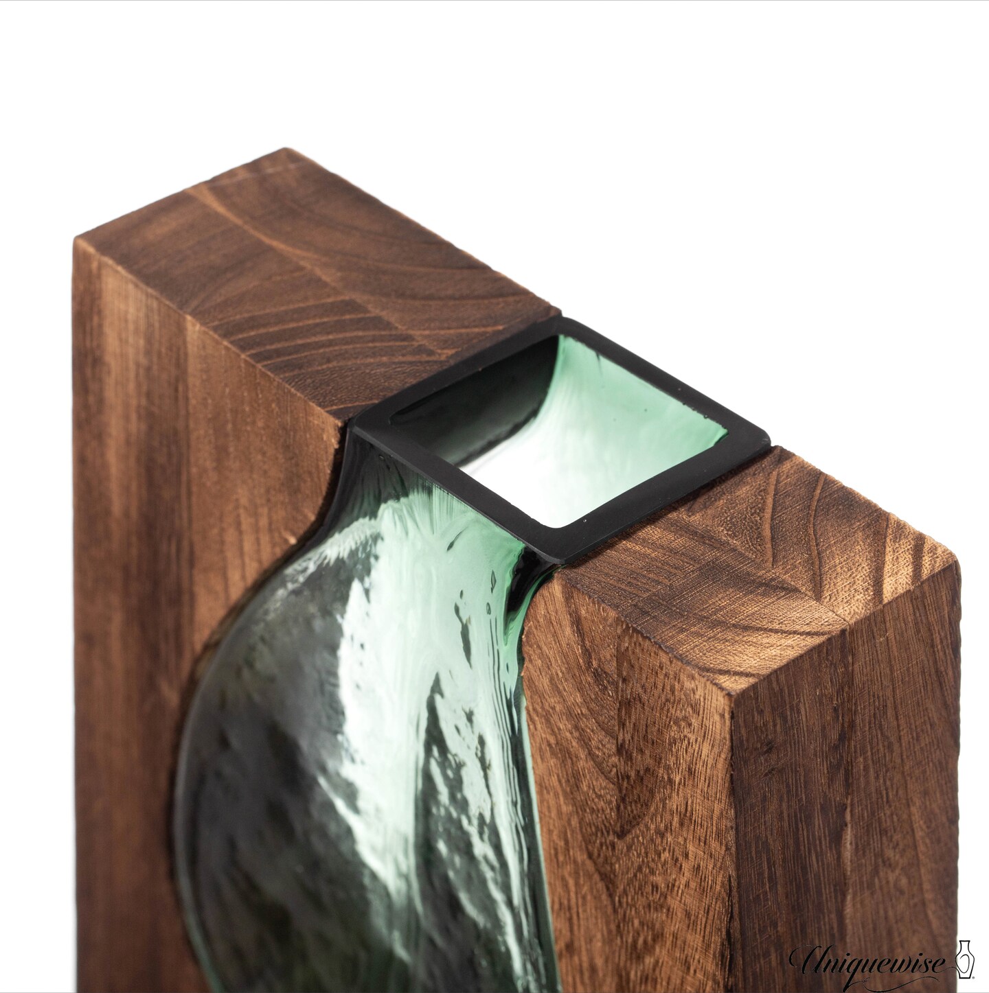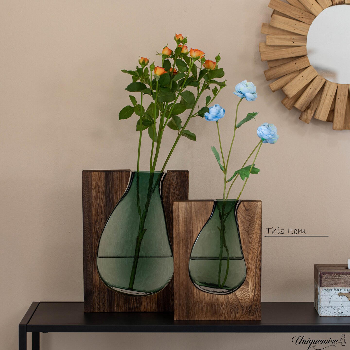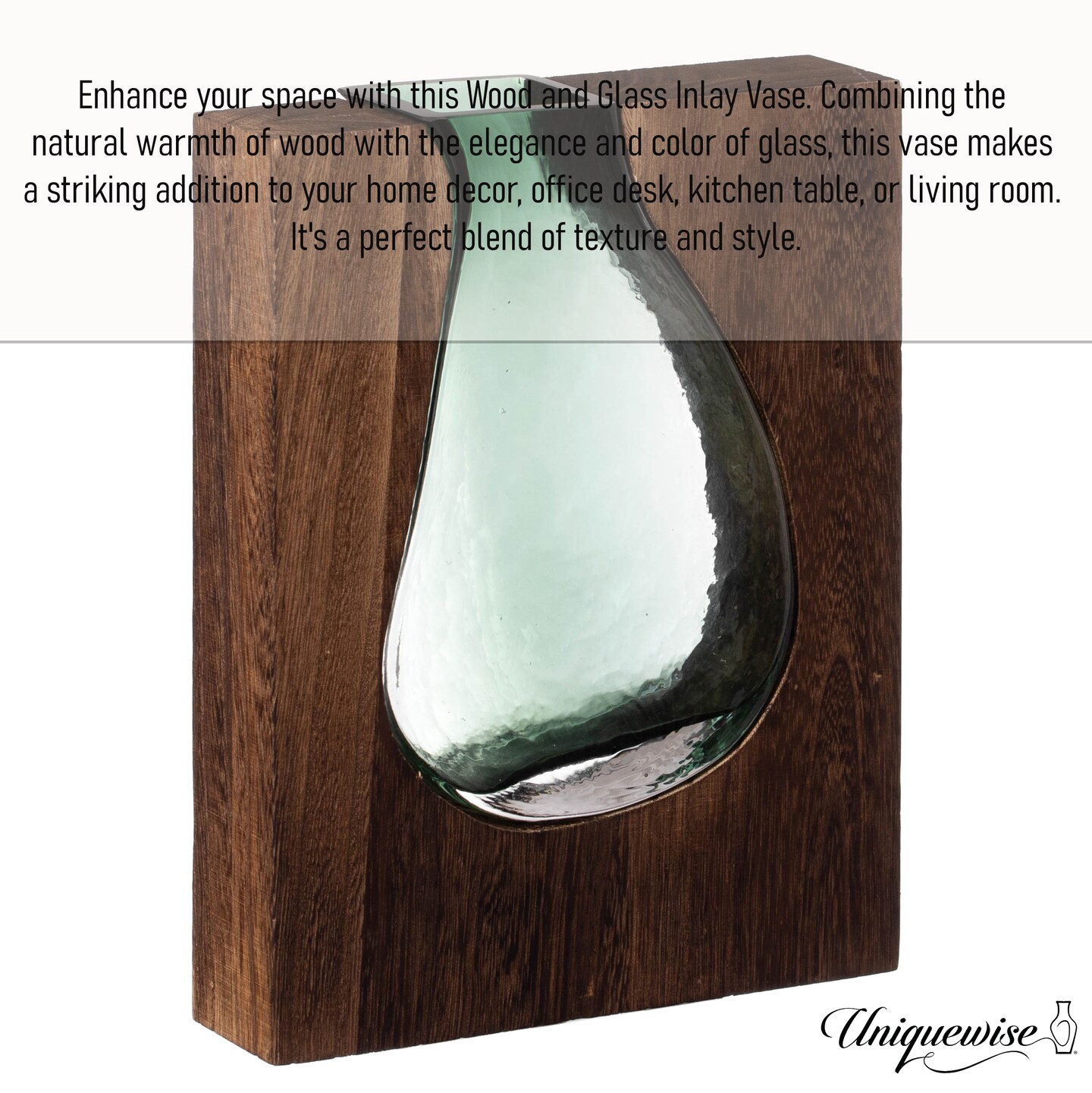 Pair of 10 and 12-Inch Wood and Glass Inlay Vases - Merging the Natural Warmth and Texture of Wood with the Elegance and Color of Glass, Perfect for Enhancing Home Decor, Office Desk and Kitchen Table
