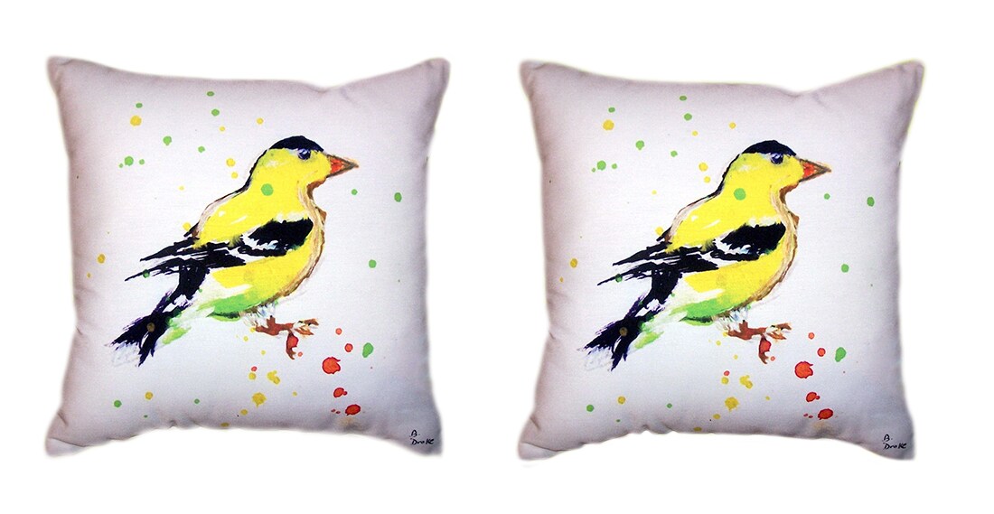 Pair Of Betsy Drake Betsy's Goldfinch No Cord Pillows 18 X 18