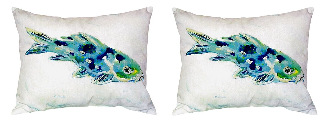 Pair of Betsy Drake Blue Koi No Cord Pillows 16 Inch X 20 Inch