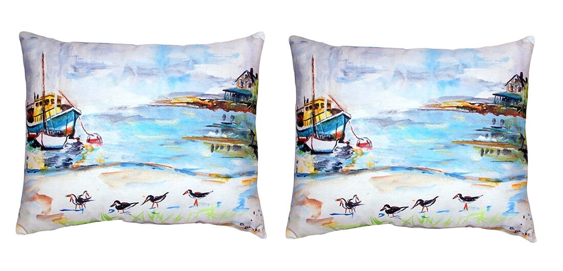 Pair of Betsy Drake Boat & Sandpipers No Cord Pillows 16 Inch X 20 Inch