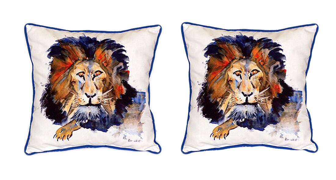 Pair of Betsy Drake Lion Large Indoor/Outdoor Pillows 18x18