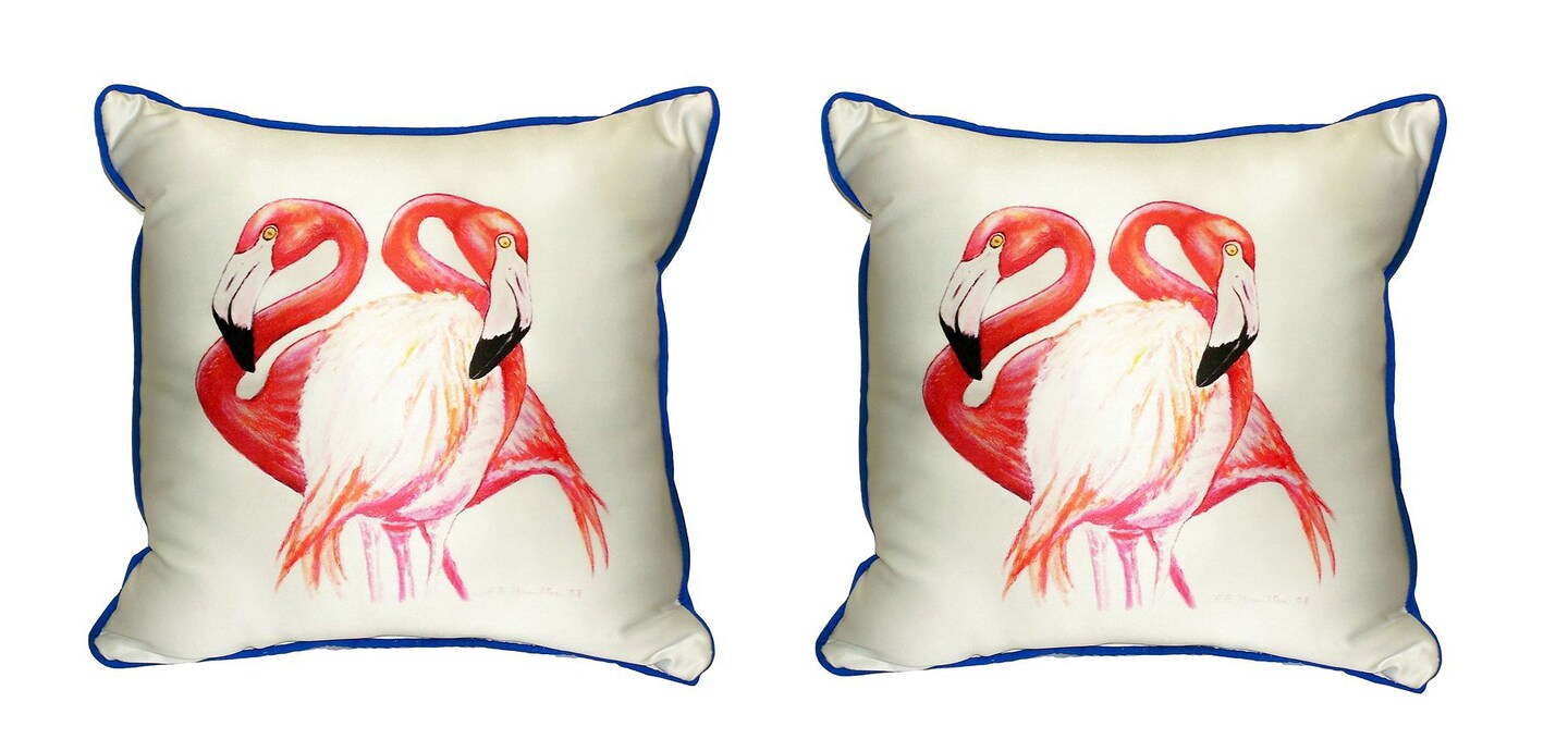 Pair of Betsy Drake Two Flamingos Small Pillows 12 Inch X 12 Inch