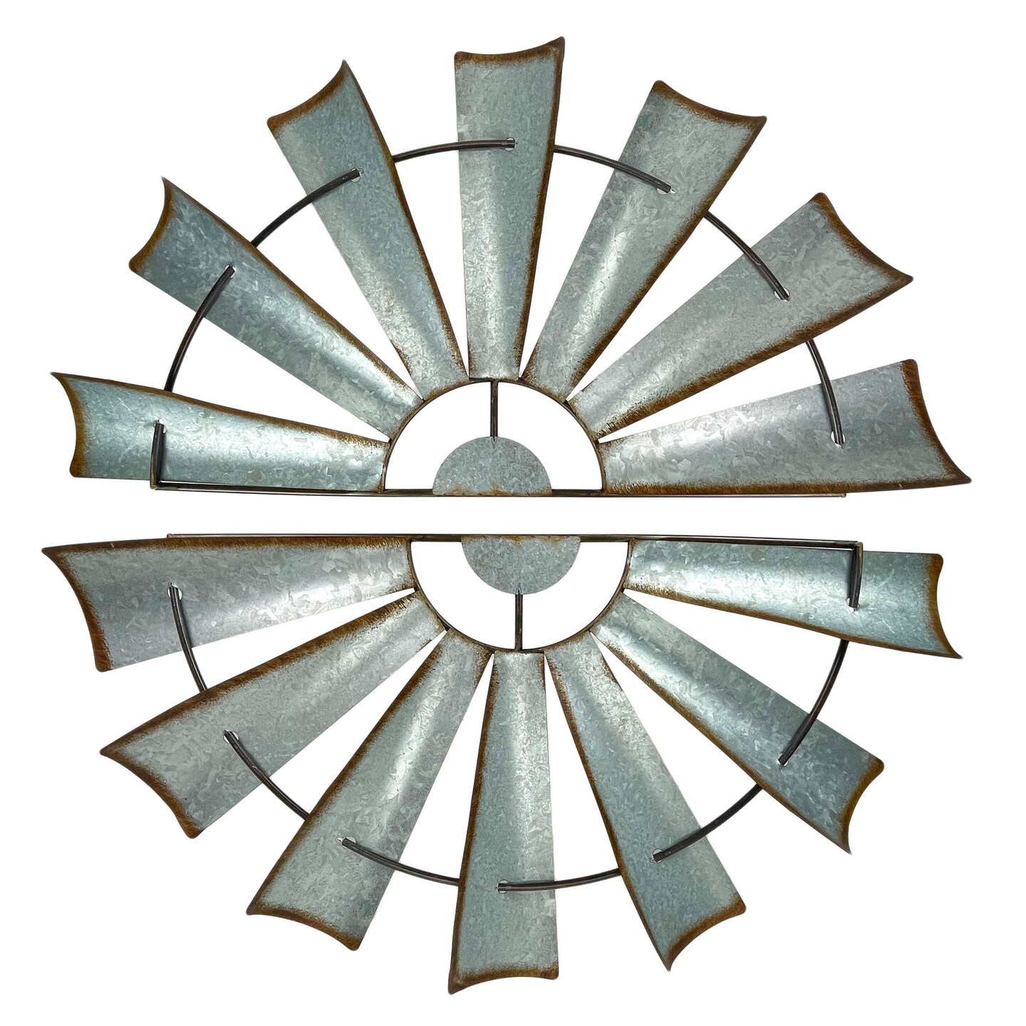 Pair of Distressed Metal Half Windmill Wall Sculptures