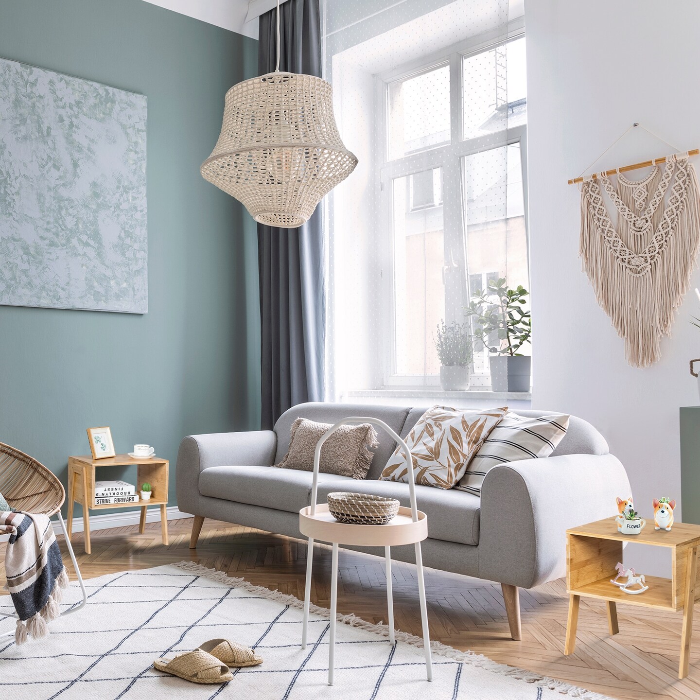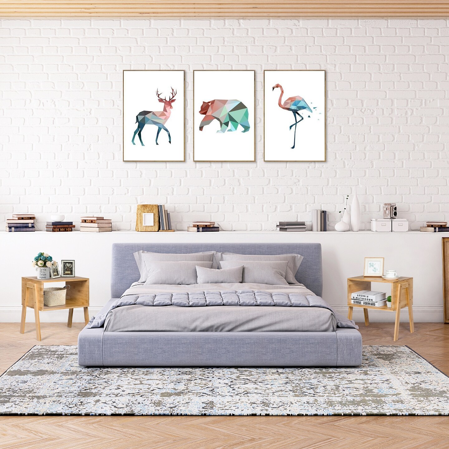 Pair of Wicker Accent Tables with Shelf for Bedroom or Living Room