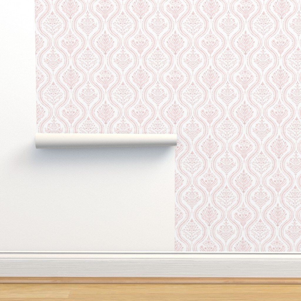 Paisley Damask Pale Pink Thistle Ogee Indian Block Print Grandmillennial White Romantic Cottagecore Custom Removable Wallpaper by Spoonflower Peel & Stick Wallpaper 2FT Wide