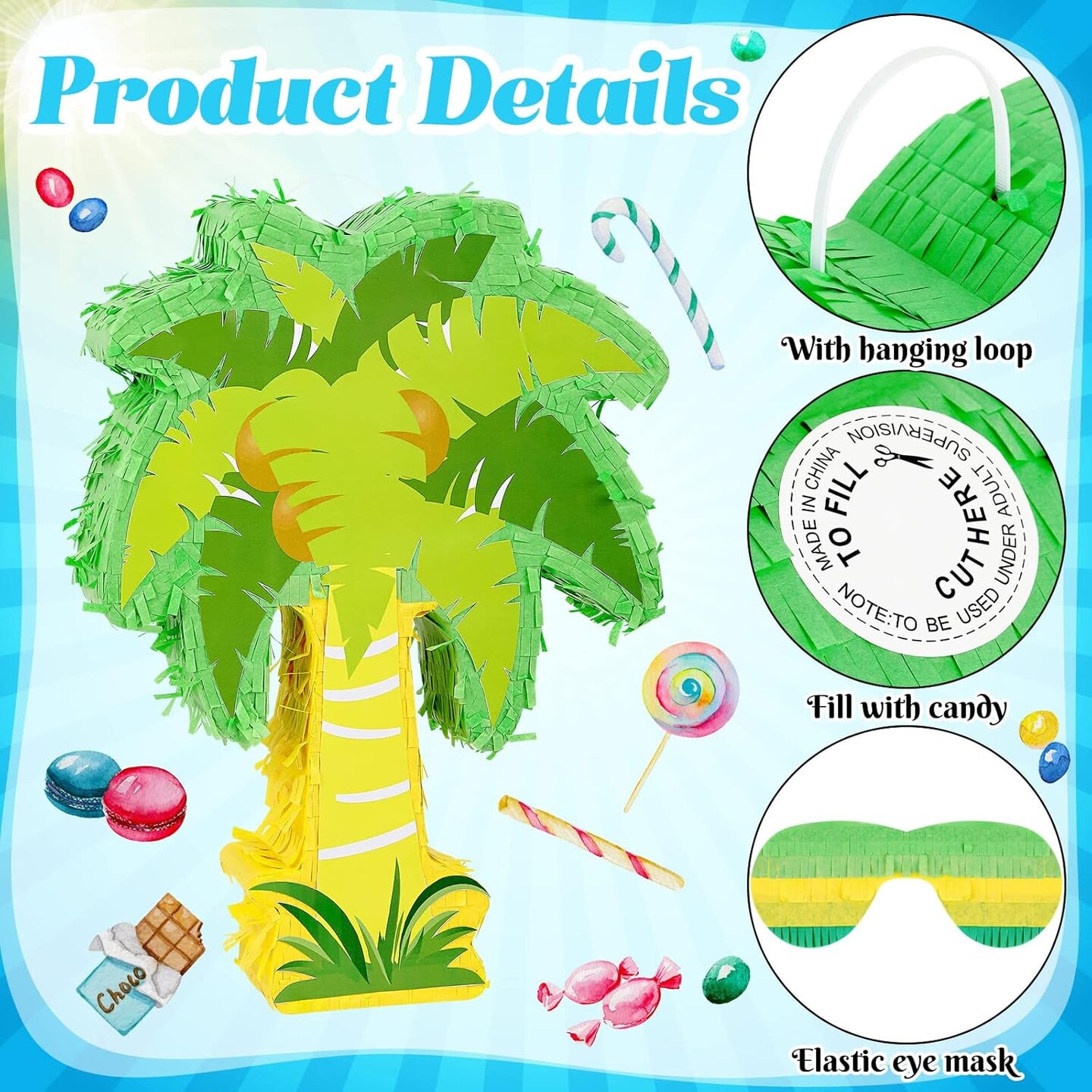 Palm Tree Pinata Party Pinata Hawaiian Coconut Tree Pinata for Tropical Luau Party Decor Pinata with Stick and Blindfold for Summer Tiki Party Birthday Party Decoration, 15.8 x 12.6 x 3.2 Inch