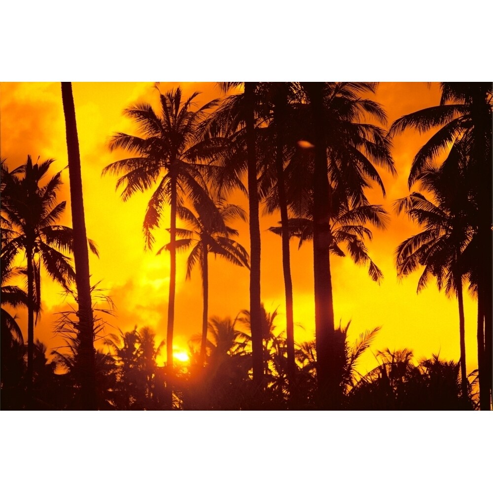 Palm Trees Silhouetted In Bright Orange Sky Sunset Poster Print