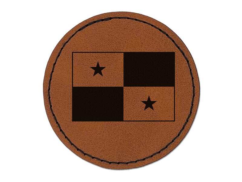 Panama Flag Round Iron-On Engraved Faux Leather Patch Applique - 2.5"
