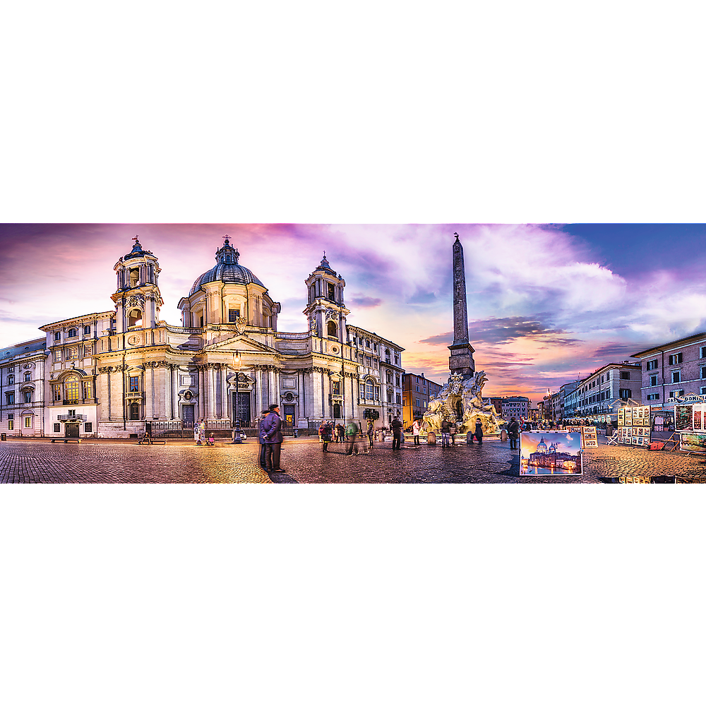 Panorama 500 Piece Jigsaw Puzzle, Piazza Navona, Rome, Italy, Fountain of the Four Rivers, European Cities Puzzle, Adult Puzzles, Trefl 29501