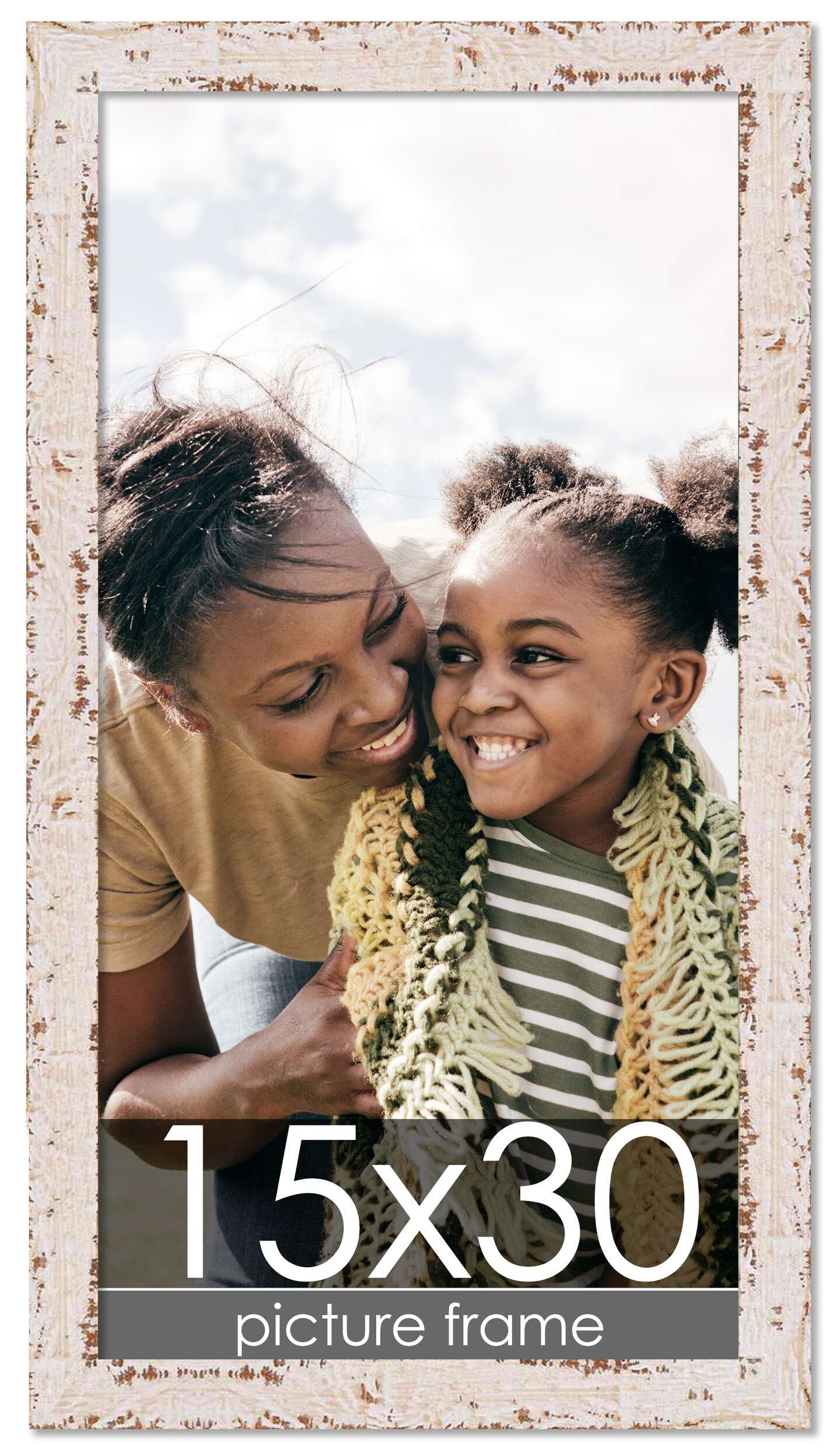 Panoramic Shabby Chic White Picture Frame - UV Acrylic, Foam Board Backing, Hanging Hardware