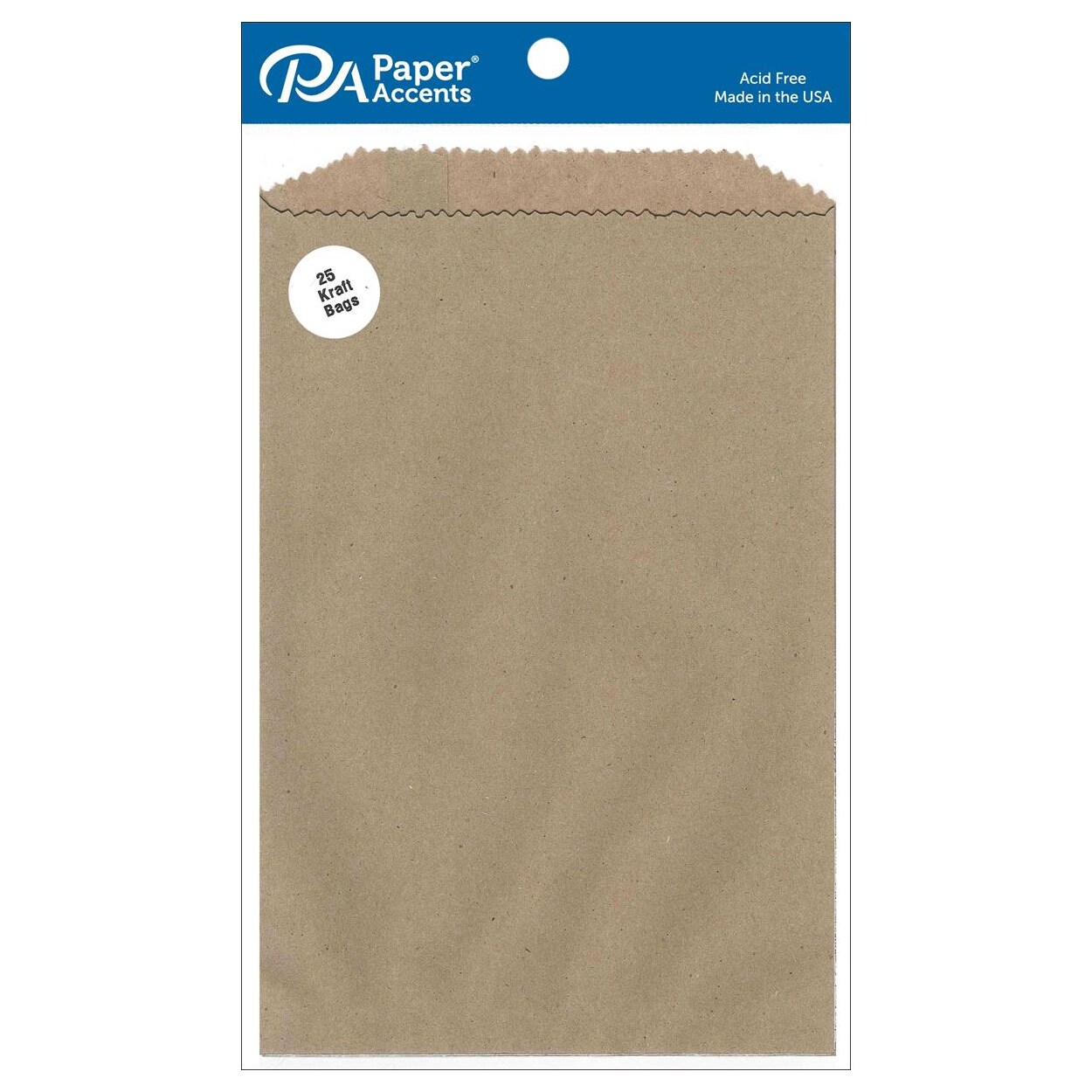 Paper Accents Kraft Bags 6 x 9.75 in - 25 Pack Pinked Edge Craft Paper Gift Bags for Scrapbooking, Card Making, Party Favors, and Brown Kraft Packaging