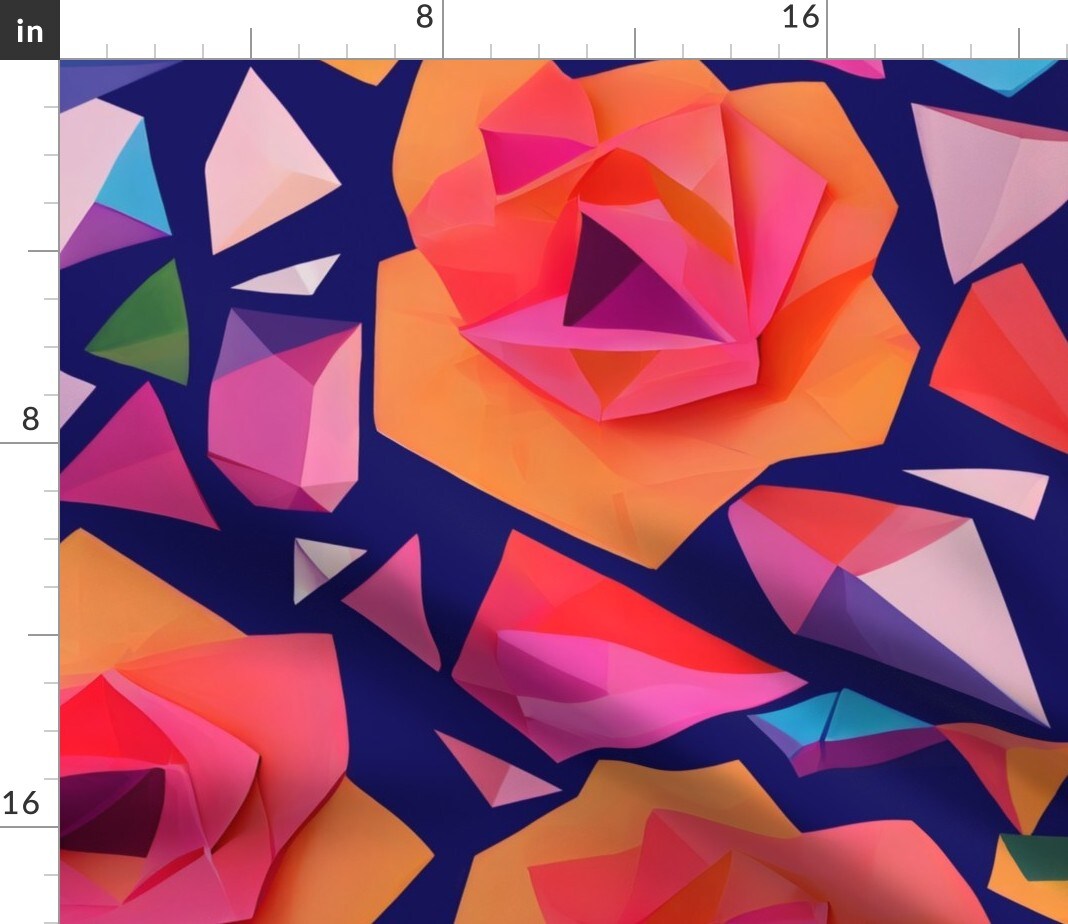 Paper Cut Flowers Abstract Geometric Bright Vibrant Large Scale Maximalist Custom Printed Fabric by Spoonflower Various Fabrics by the Yard or Fat Quarter