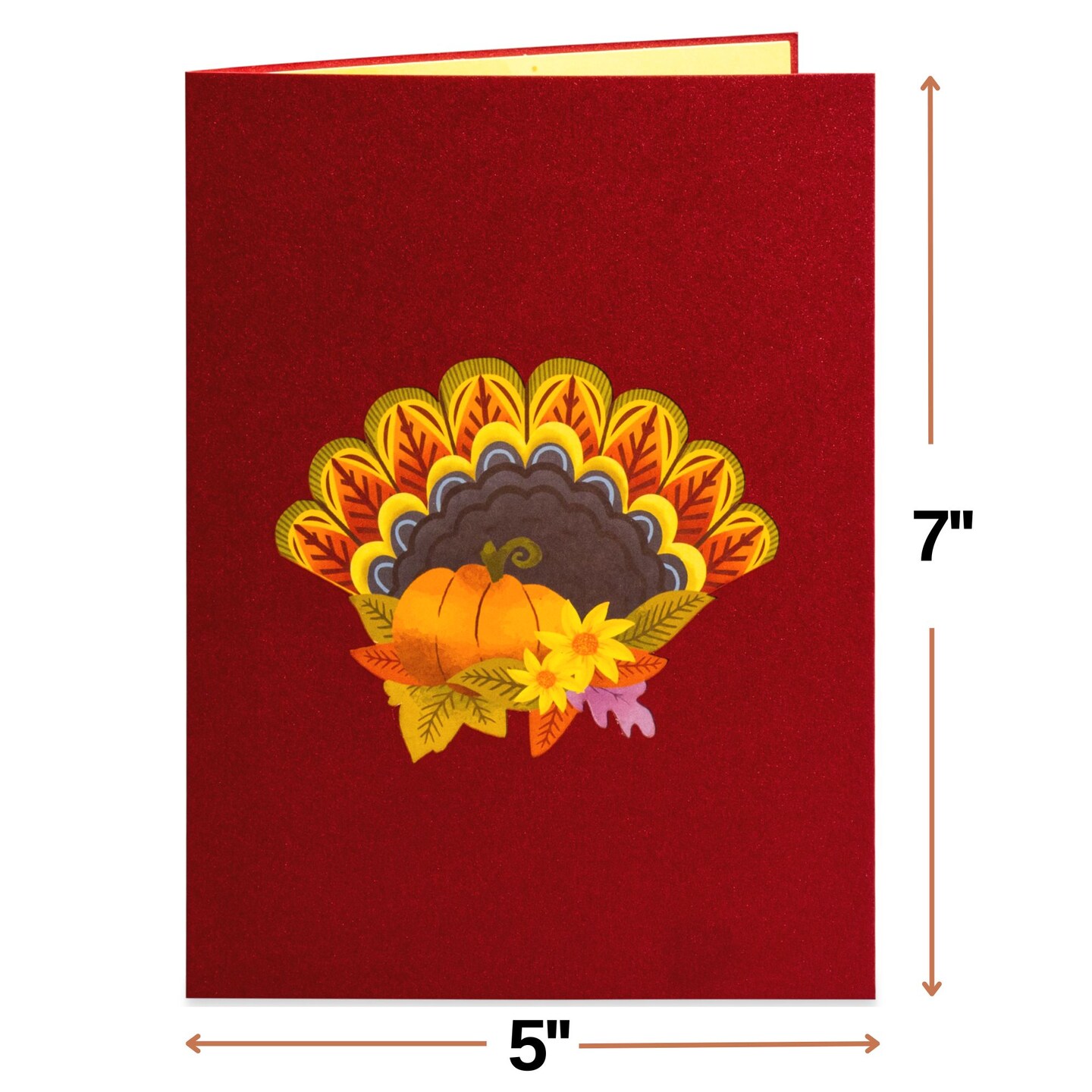 Paper Love 3D Pop Up Card - Thanksgiving Turkey Greeting, Perfect for Hostess Gift & Fall Holiday Wishes - 5" x 7" Cover with Note Tag