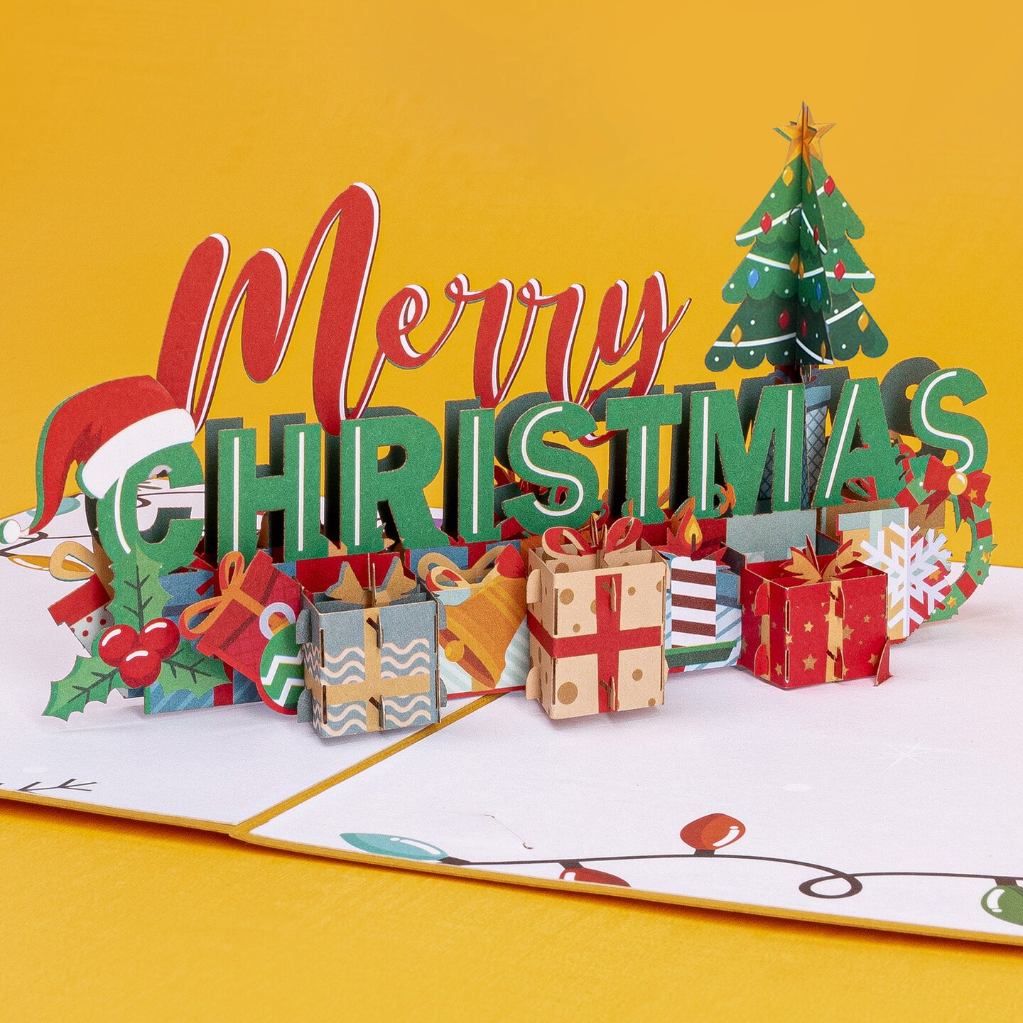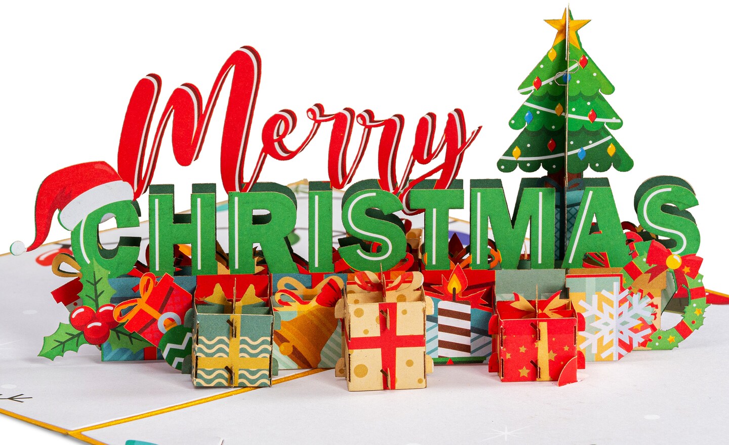 Paper Love Pop Up Christmas Card, 3D Merry Christmas, for Christmas or Holidays, 5" x 7" Cover - Includes Envelope and Removable Note Tag