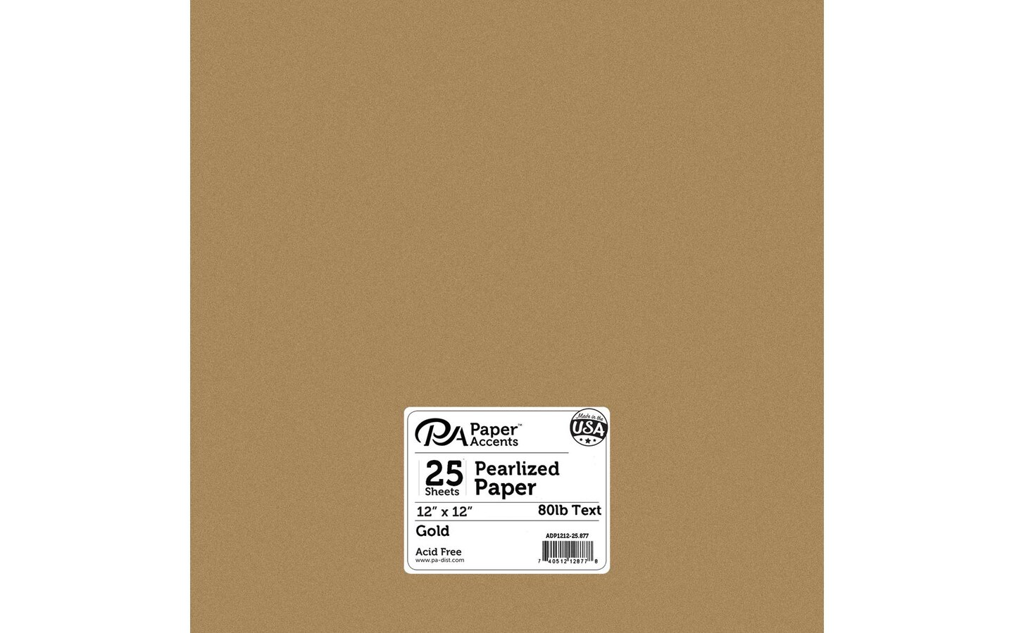 Paper Pearlized 12x12 80lb 25pcPk Gold