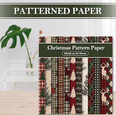 Paper Plaid Woodland Scrapbook Specialty Paper Double Sided Xmas Craft Paper For DIY Card Making Photo Album Decor, 6 x 6 Inch