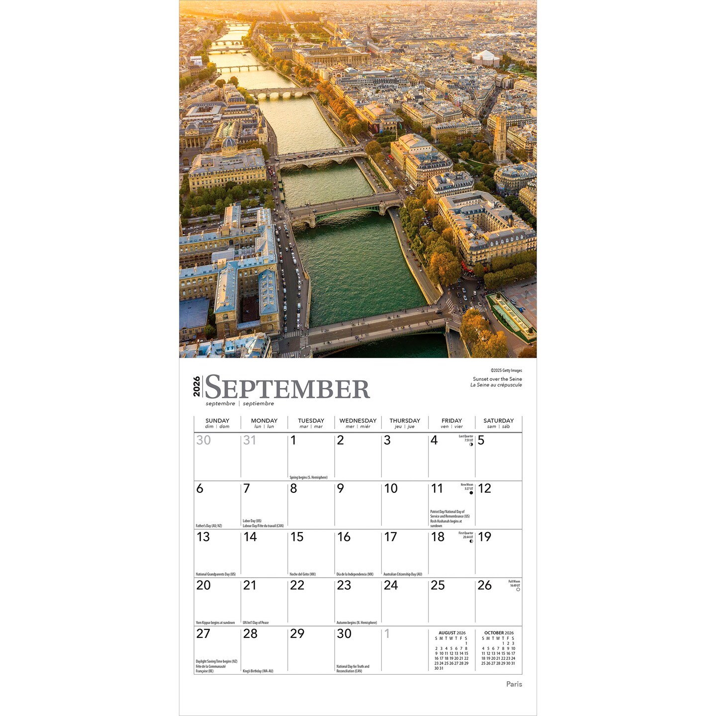 Paris | 2026 7 x 14 Inch (Hanging) Monthly Mini Wall Calendar | English/French Bilingual