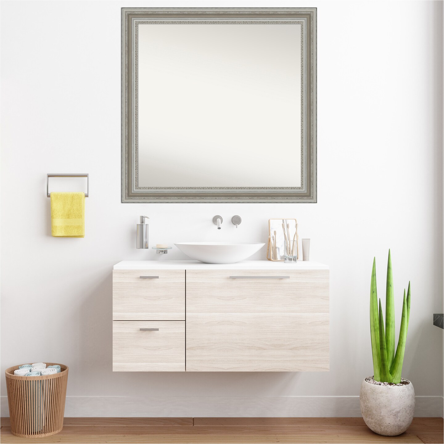 Parlor Silver Non-Beveled Custom Framed Bathroom Vanity Wall Mirror