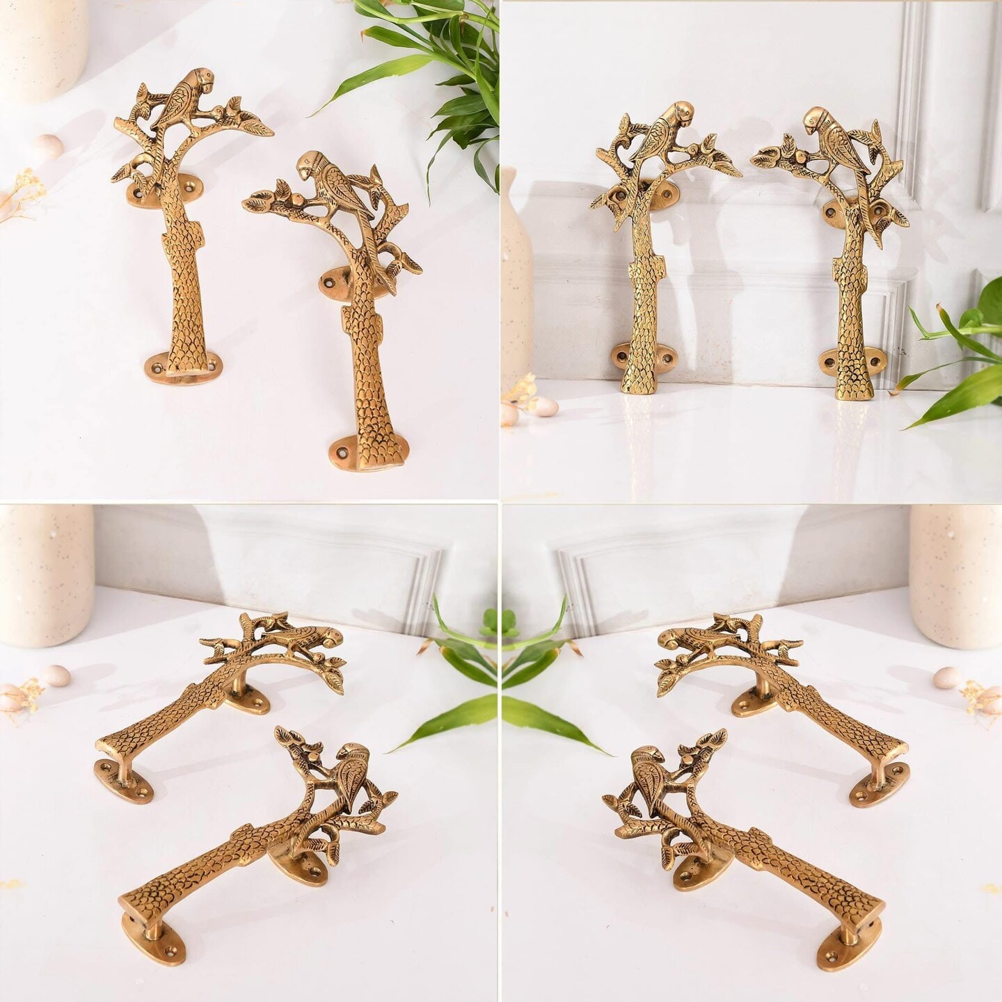 Parrot on the Tree Door Pull Handles Unique Brass 8 Inches Pair of 2 Pull Knobs Antique Design Handles for Drawer, Shelf, Cabinet, Wardrobe, Almirah Housewarming Gift