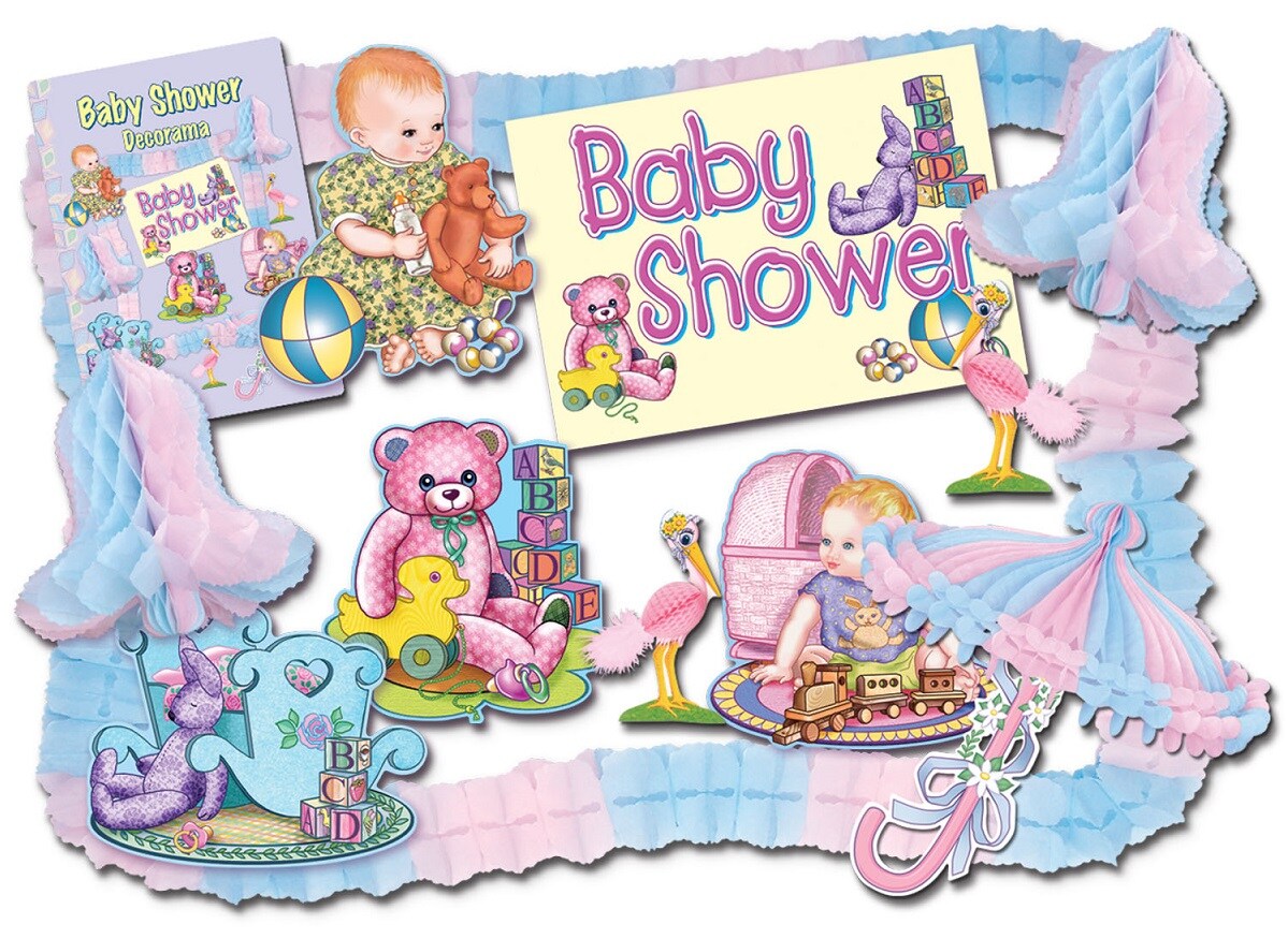 Party Central 66-Piece Pink and Blue Baby Shower Party Decorating Accessory Kit