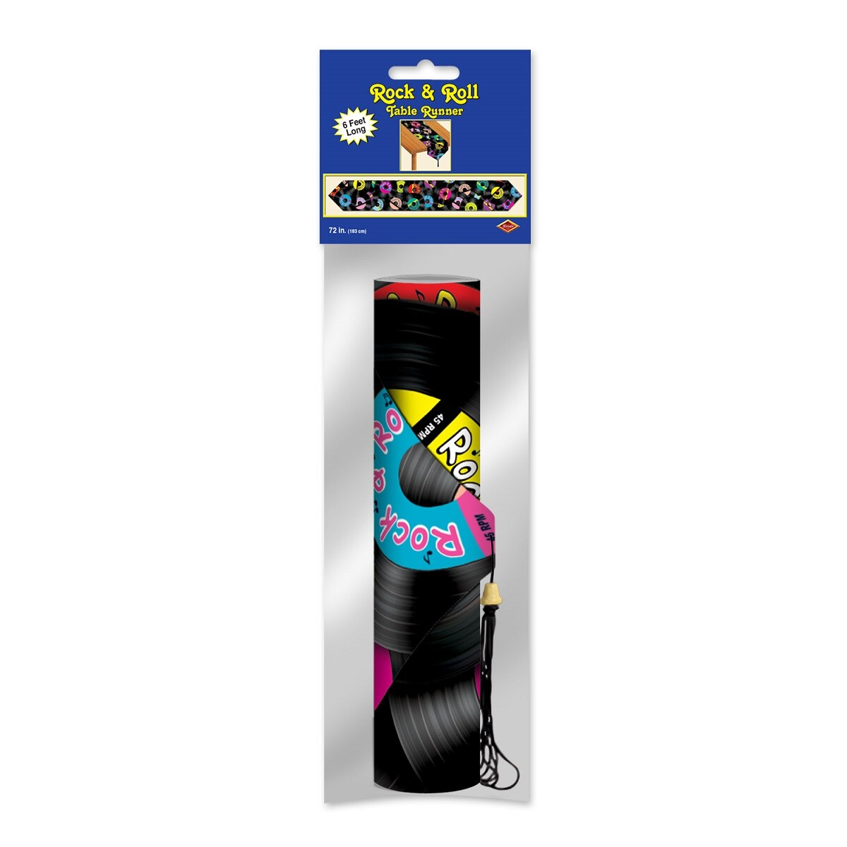Party Central Club Pack of 12 Black Vintage 50's Rock N' Roll Table Runners 6'