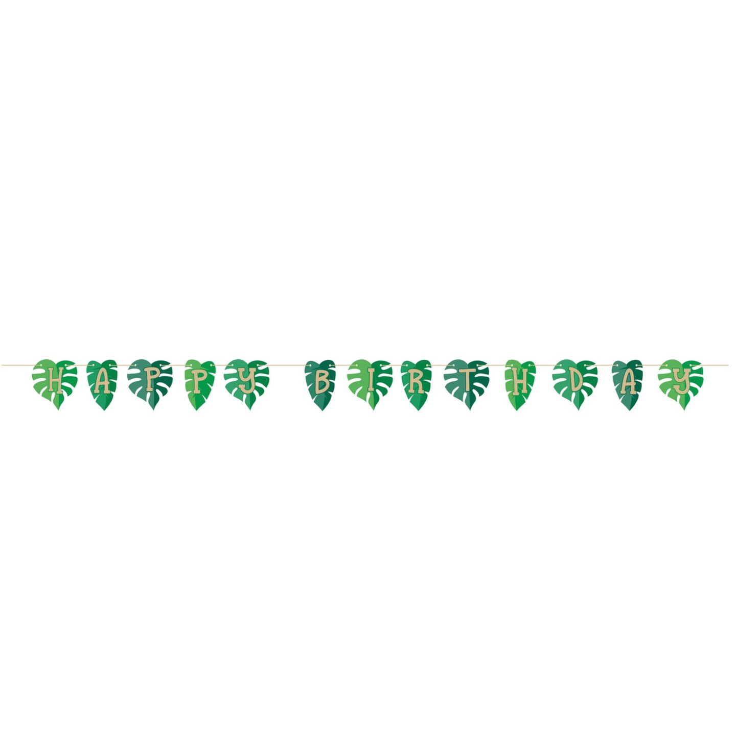 Party Central Club Pack of 12 Green and Beige Leaf "HAPPY BIRTHDAY" Party Banners 89"