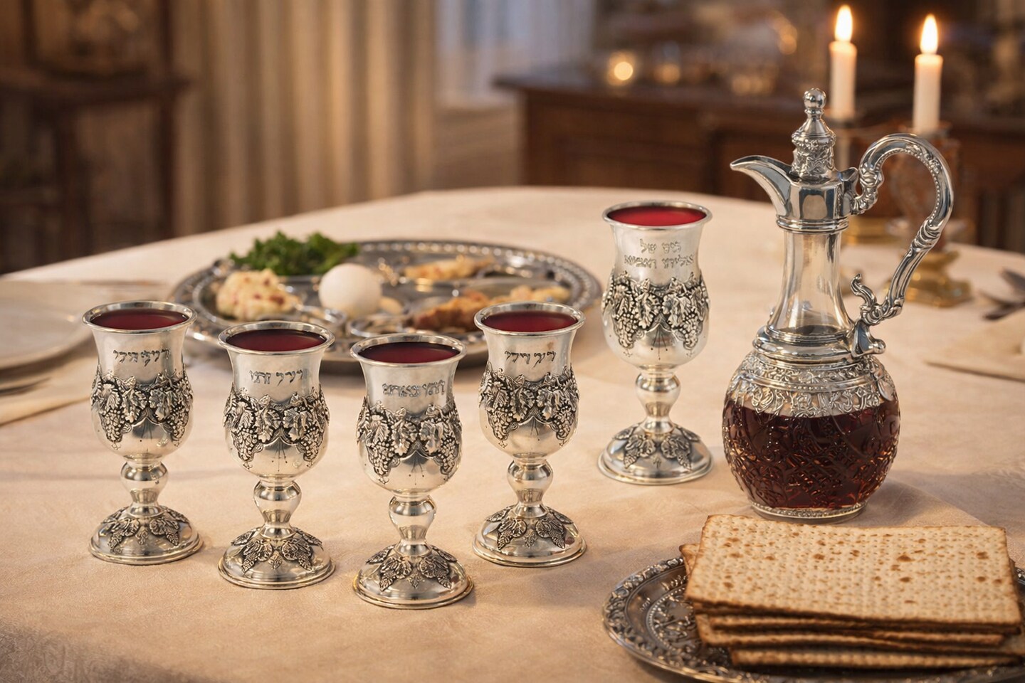 Passover 4 Cups of Wine, Wine Decanter & Kos Shel Eliyahu Cardstock Cutouts – Pesach Seder Craft Decorations for Jewish Classroom Projects, 20 Sets