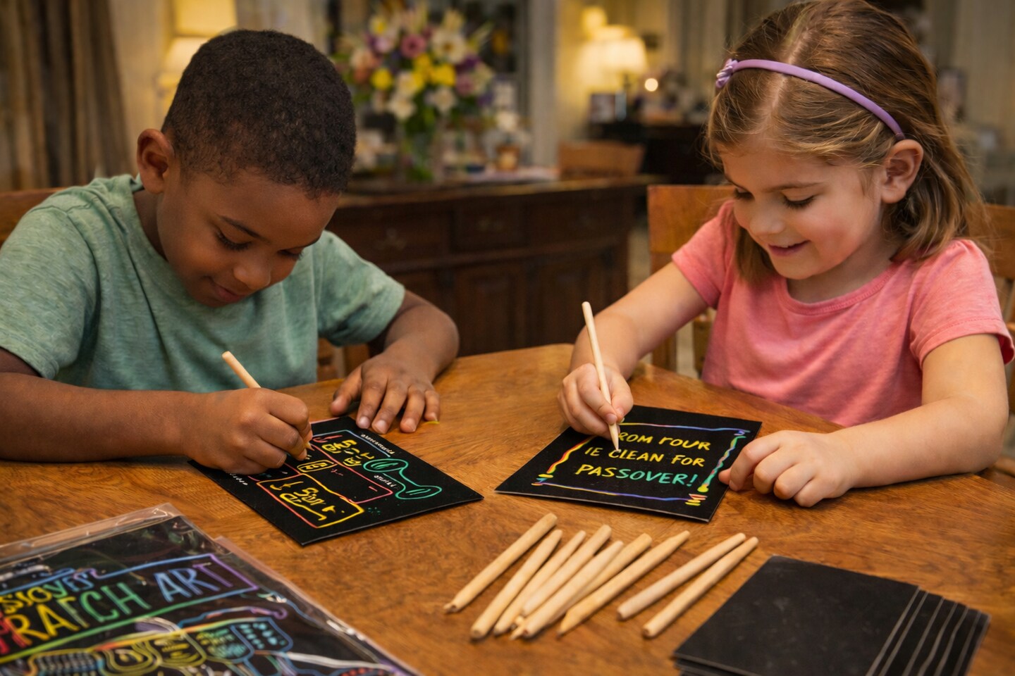 Passover Scratch Art Paper Kit – Makes 24 – Pesach Scratch Craft Cards with Wooden Tools for Kids Ages 4+