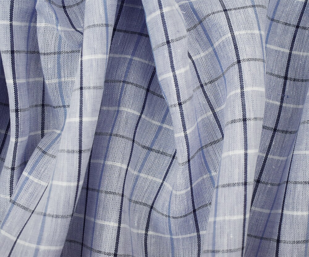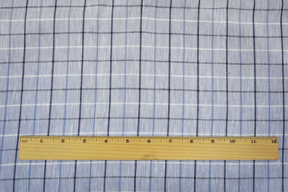 Pastel Blue-Blue-White Spence Bryson Check Plaid Irish Linen Slub Woven Fabric By the Yard
