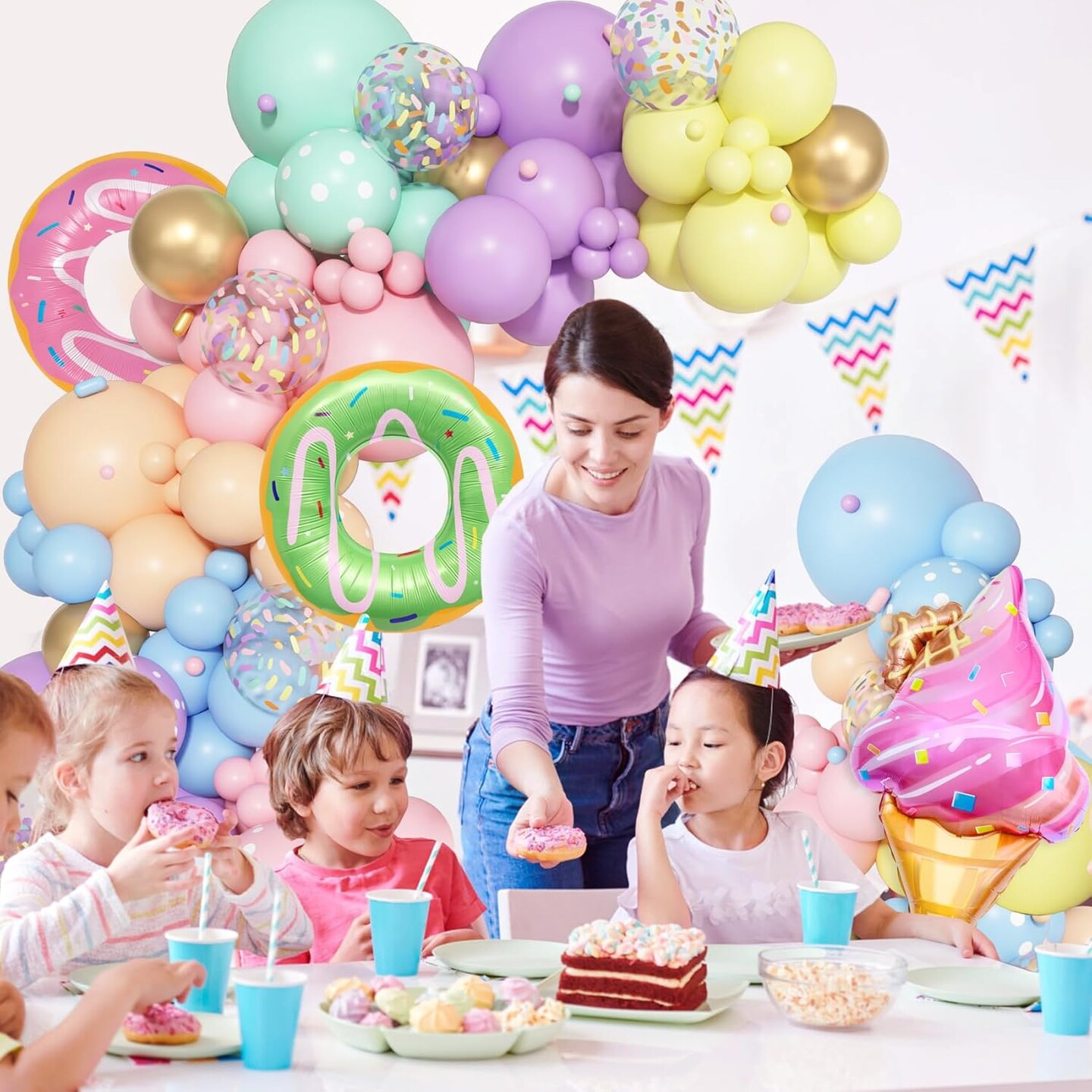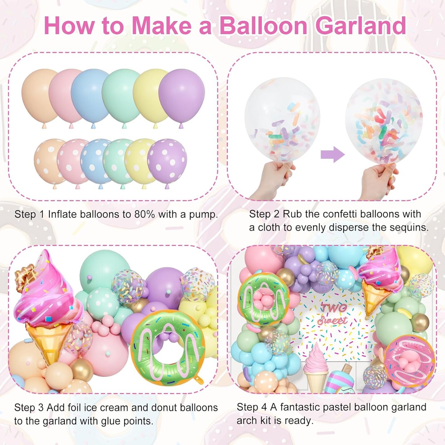 Pastel Donut Balloon Arch Garland Kit, 162pcs Donut Two Sweet One Birthday Party Supplies Girl Pastel Sprinkle Confetti Candy Ice Cream Foil Balloons for First Birthday Party Baby Shower Decoration