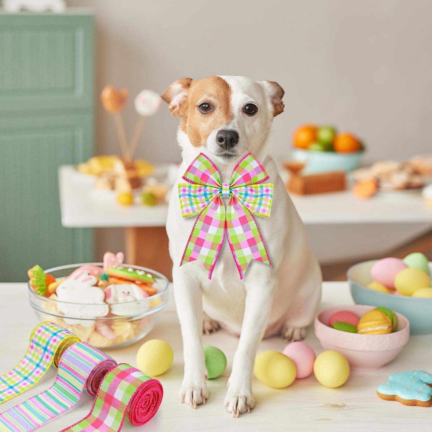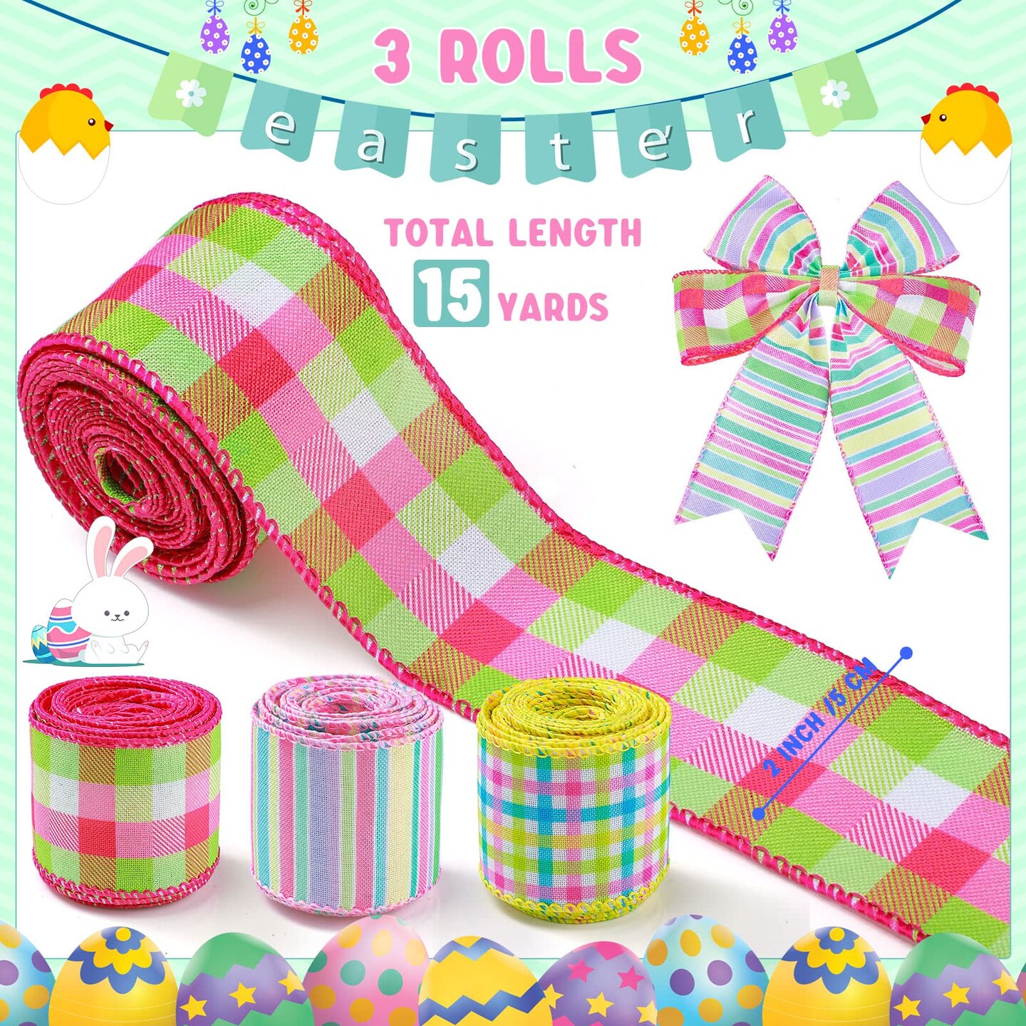 Pastel Easter Plaid Fabric Ribbon Spring Gingham Wired Ribbon Ideal for DIY Crafts, Wreaths, Gift Wrapping & More(2,Cute Colors)