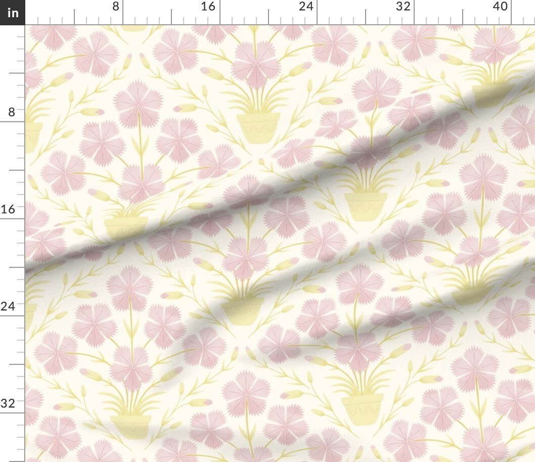 Pastel Floral Flower Damask Pink And Yellow Soft Hues Feminine Spring Cottagecore Custom Printed Fabric by Spoonflower Various Fabrics by the Yard or Fat Quarter
