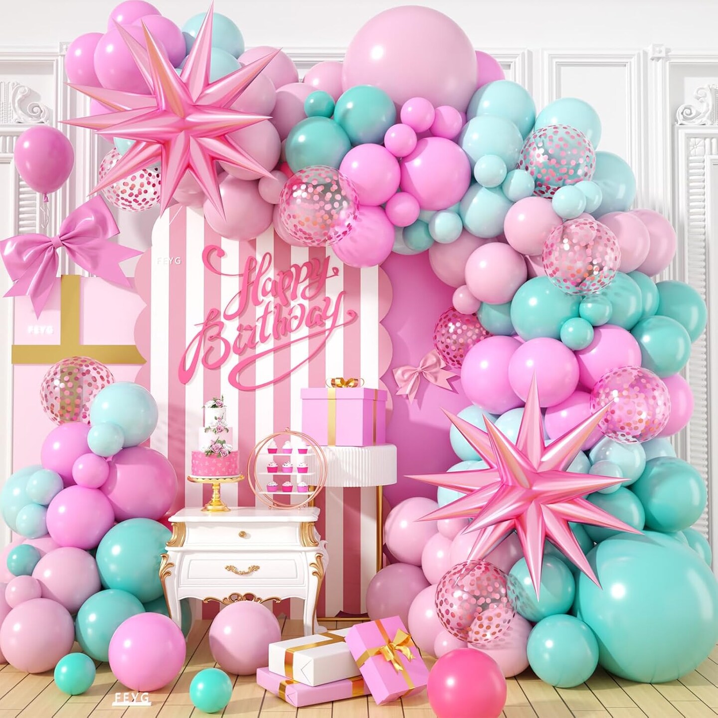 Pastel Pink Teal Blue Turquoise Latex Party Balloons(Pink)