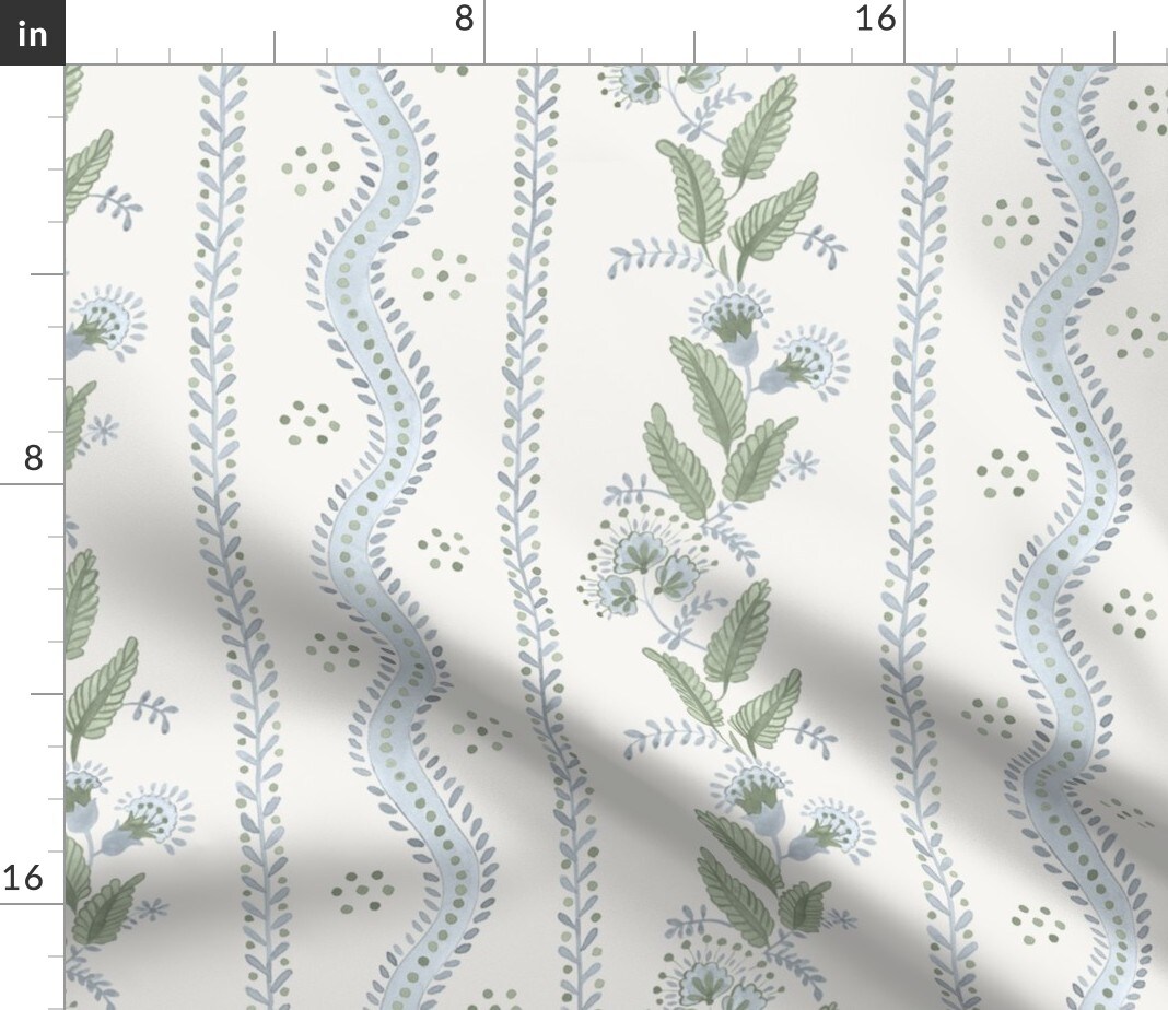 Pastel Preppy Light Blue Green Grandmillennial Botanical Floral Spring Summer Custom Printed Fabric by Spoonflower Various Fabrics by the Yard or Fat Quarter