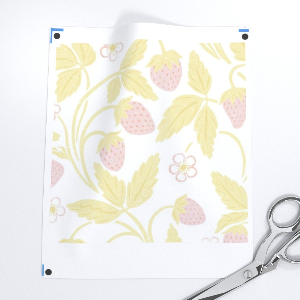 Pastel Strawberry Light Pink Yellow Cheerful Garden Playful Delicate Romantic Custom Printed Fabric by Spoonflower Various Fabrics by the Yard or Fat Quarter
